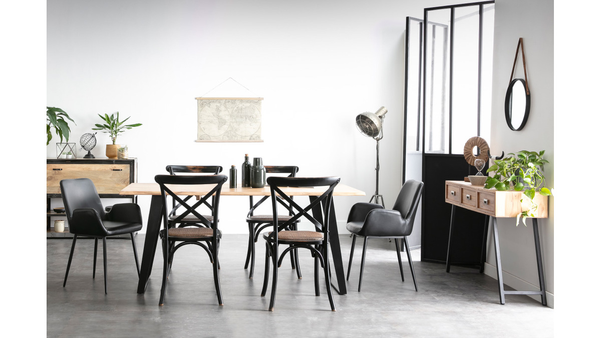 Table à manger en bois massif et métal noir L175 cm KORA livrée à monter.