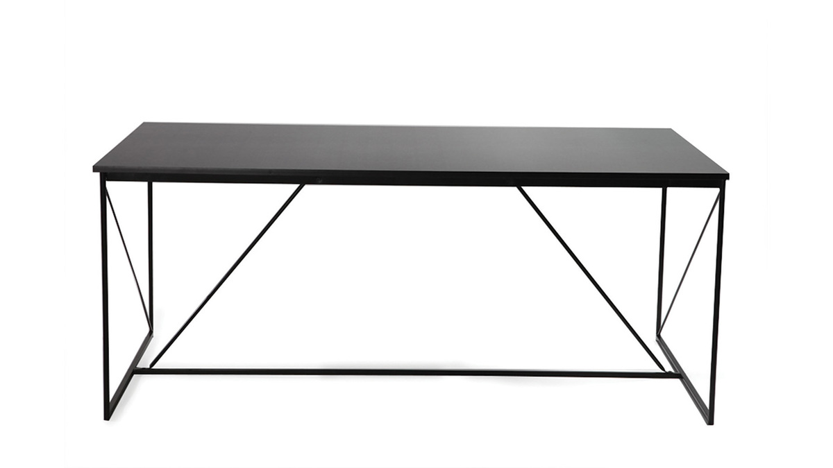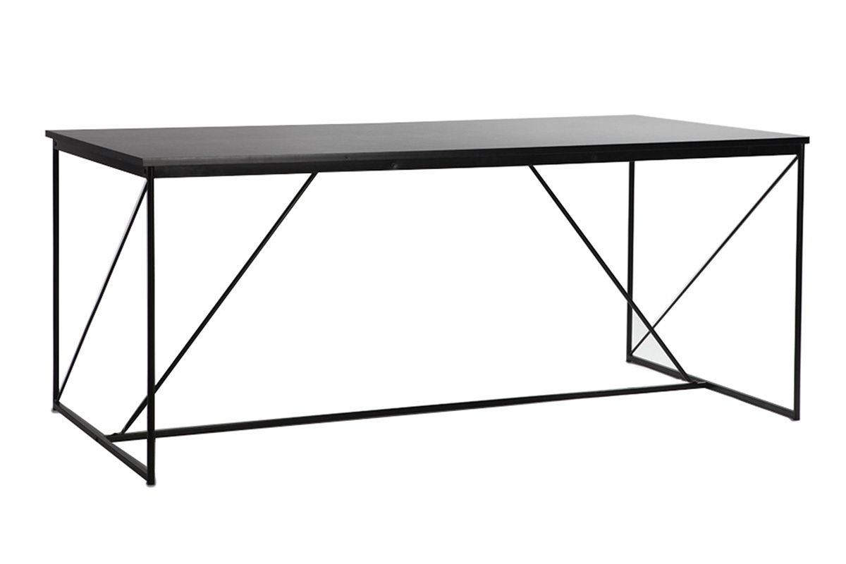 Cette table à manger possède un plateau en panneaux de fibres de bois revêtu d'un PVC gris métal et un piètement en métal laqué époxy noir. Ces dimensions généreuses vous permettent d'accueillir de nombreux convives. En effet, 8 personnes peuvent facilement être assis autour de cette table.