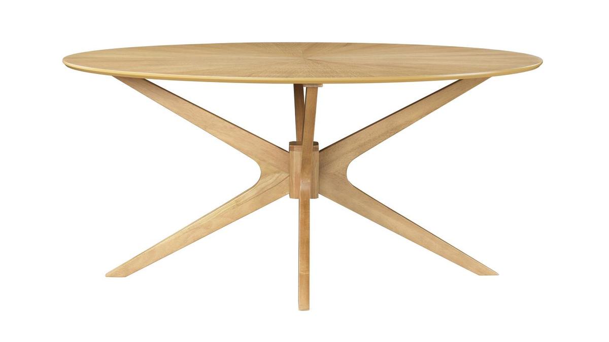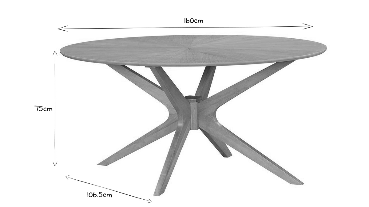 Avec ses lignes fluides et sa forme allongée (L160 x P106 cm), cette table à manger ovale apporte une note douce et élégante dans nos intérieurs. Synonyme de convivialité et de partage, elle rassemble confortablement jusqu'à 6 convives.