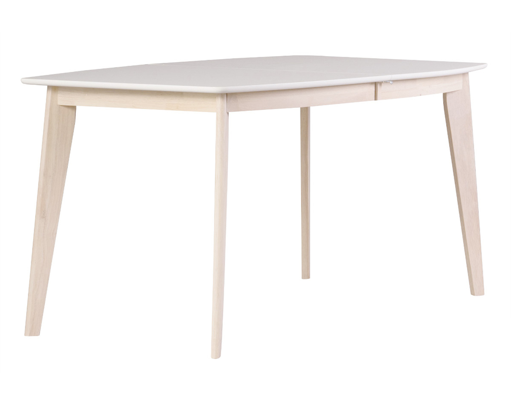 Pour un look scandinave très épuré, voici la table à manger extensible scandinave 150-200 cm blanc et bois clair LEENA.