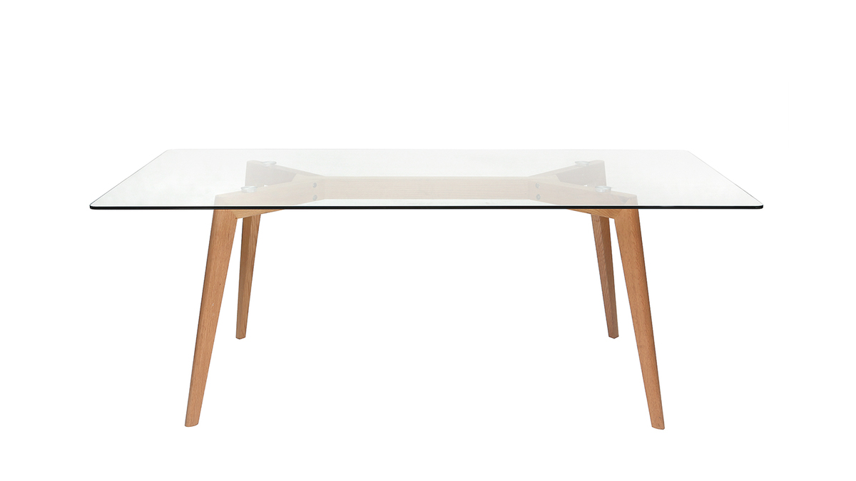 Grâce à son large plateau en verre qui laisse apparaître son joli piètement en bois, cette table DAVOS apporte beaucoup d'élégance à votre intérieur. Elle n'absorbe pas la lumière mais la laisse passer, elle apportera donc beaucoup de luminosité à votre pièce à vivre et donnera une sensation de pièce plus spacieuse. Les lignes élancées des pieds ainsi que les recoins arrondis du plateau font de cette table à manger un meuble robuste, unique et design.