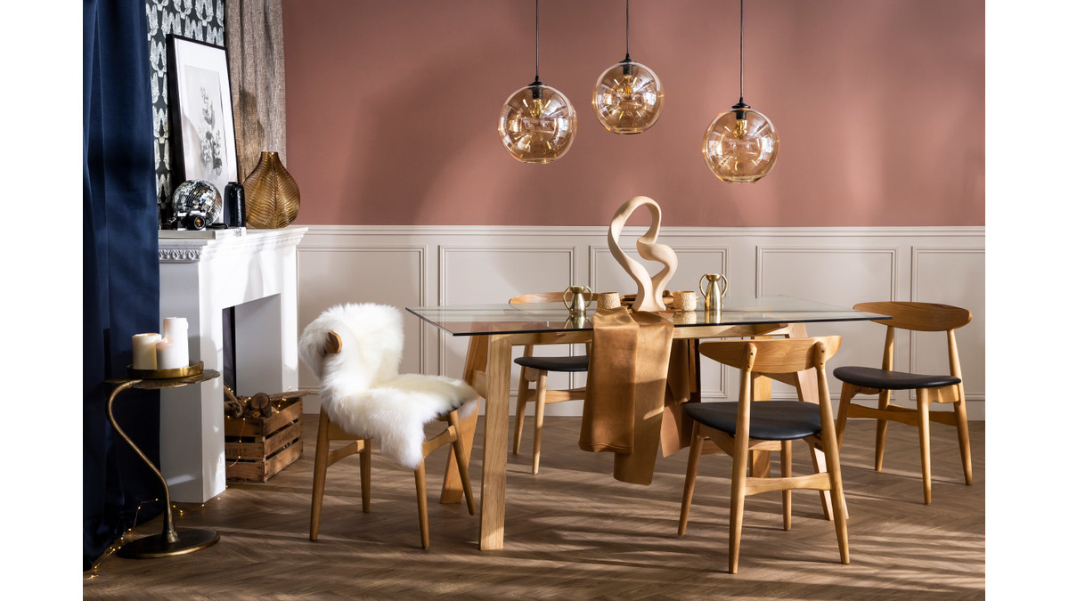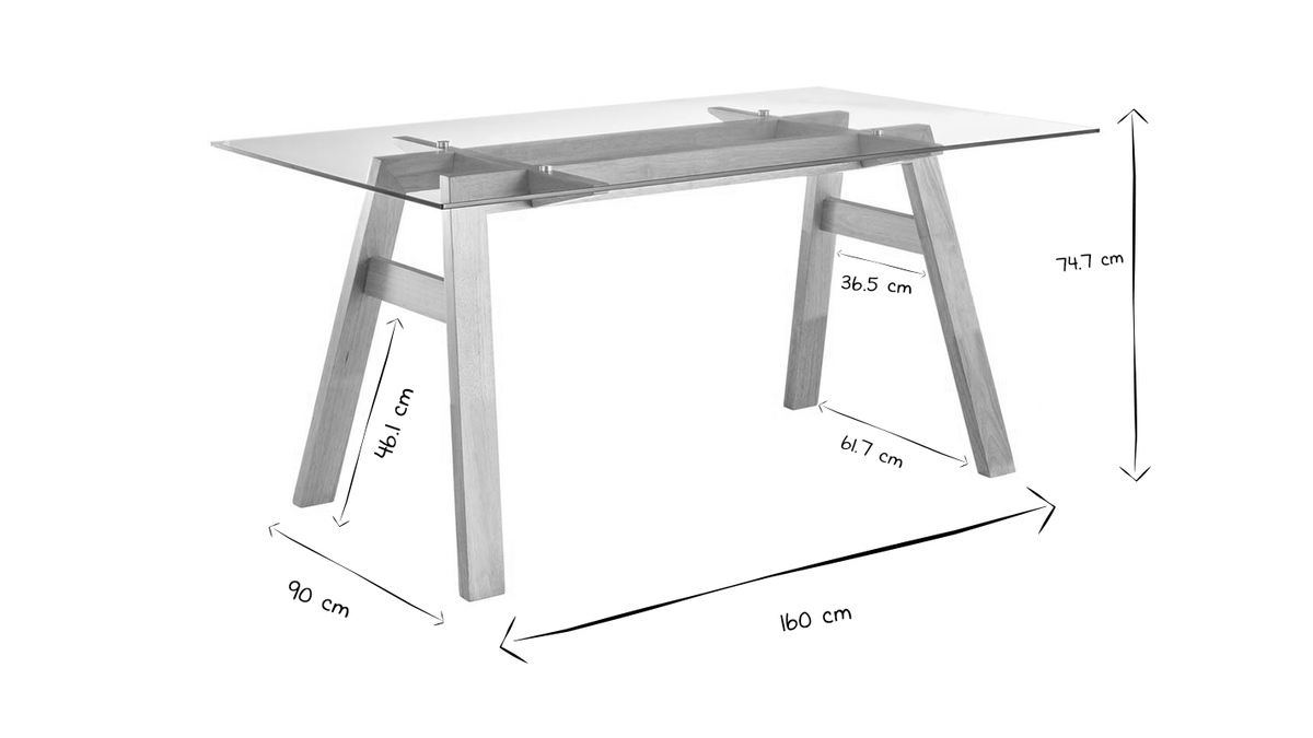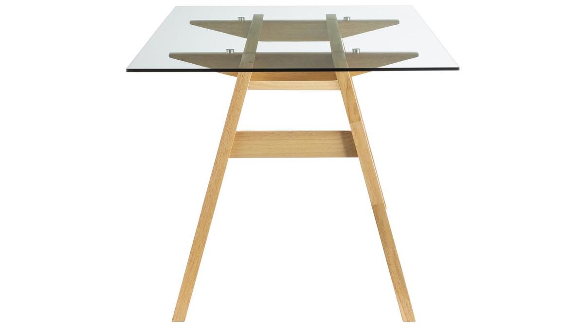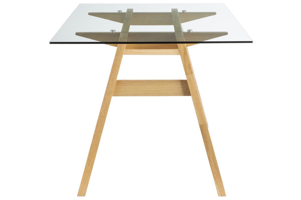 Grâce à son allure contemporaine et épurée, cette table à manger se marie facilement à tous les styles de décoration. Elle comprend, en effet, un élégant plateau en verre qui laisse transparaître un joli piètement en hévéa massif. Oubliez les pièces imposantes et massives qui alourdissent la pièce : grâce à son plateau en verre transparent, cette table est la parfaite combinaison entre force et légèreté visuelle, élégance et sobriété.