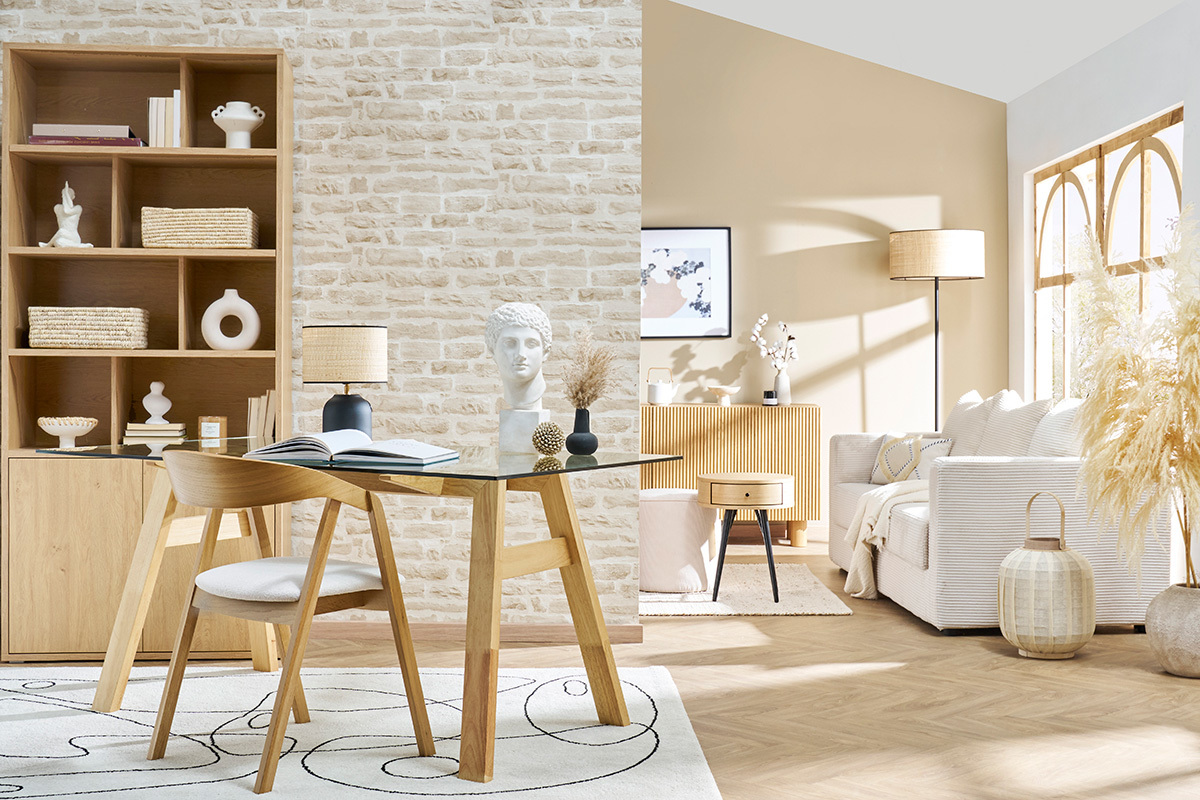 Pouvant aussi être utilisée comme bureau, cette grande table vous offre tout l'espace dont vous avez besoin pour étaler vos dossiers, installer votre ordinateur et poser une imprimante.