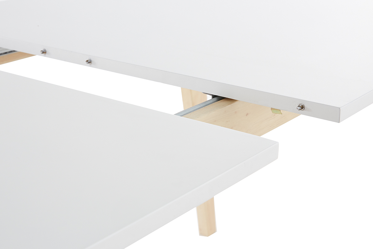 Le design soigné de cette table rectangulaire 6 personnes à rallonges intégrées reprend les codes du style nordique avec son chaleureux piètement en bois clair et la pureté de ses lignes. Modernisé par un large plateau blanc, l'ensemble se veut à la fois moderne et authentique. Au look aussi actuel qu'intemporel, SWAD s'adaptera à de nombreuses ambiances, et séduira à coup sûr les amateurs de déco scandinave.