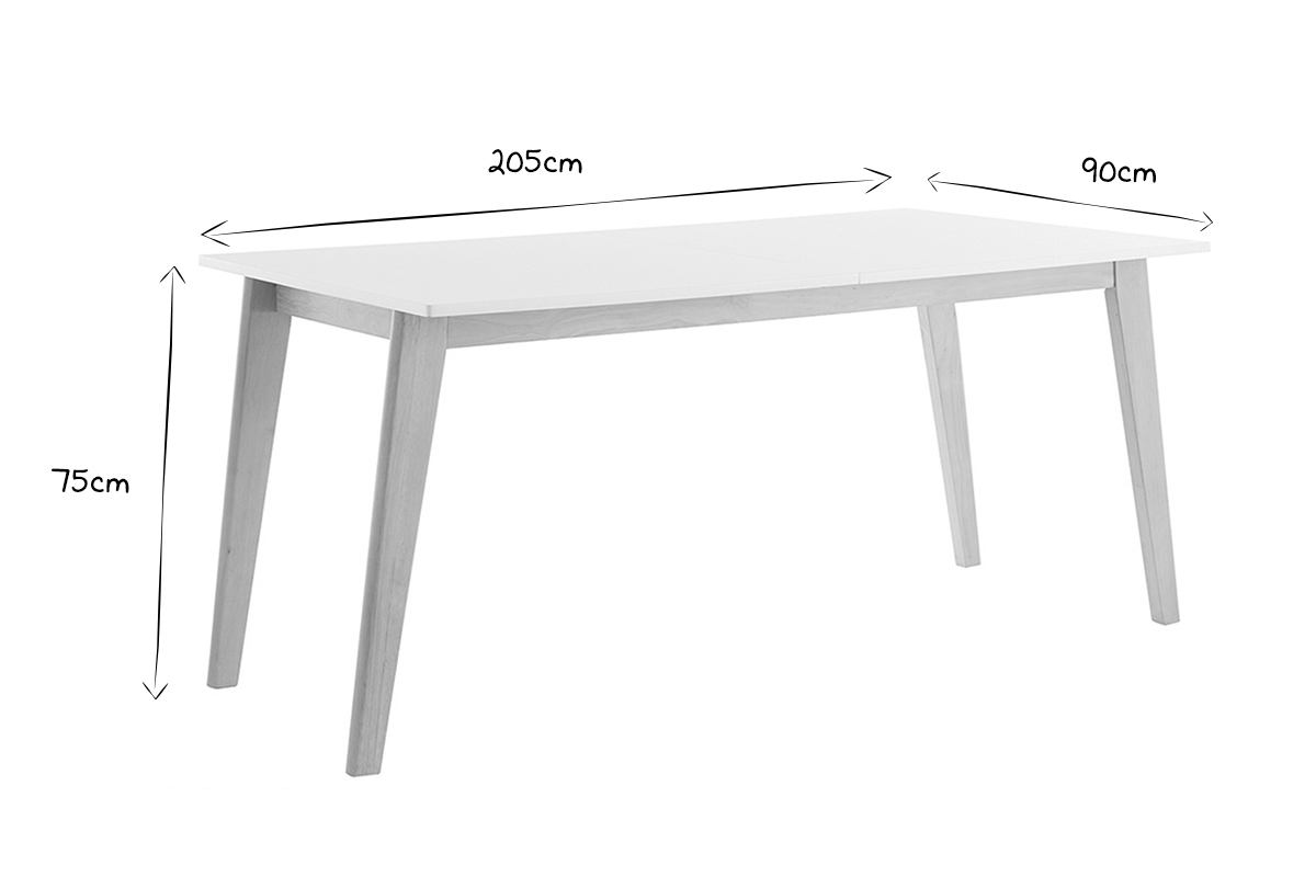 Dimensions table ouverte : L205 x L90 x H75 cm