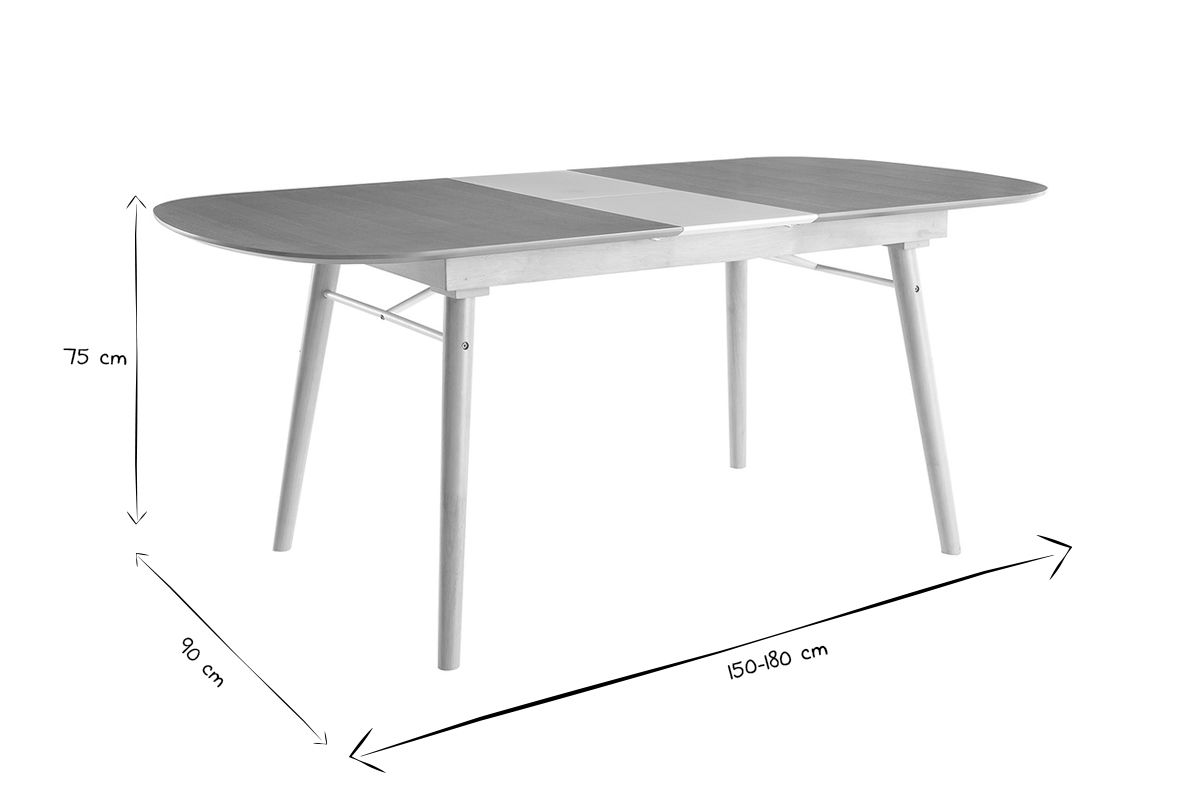 Résistante et facile à vivre, cette table à manger à rallonges à l'allure scandinave et aux lignes douces permet de créer une atmosphère chaleureuse et conviviale. Elle est idéale dans une salle à manger d'inspiration nordique ou vintage.