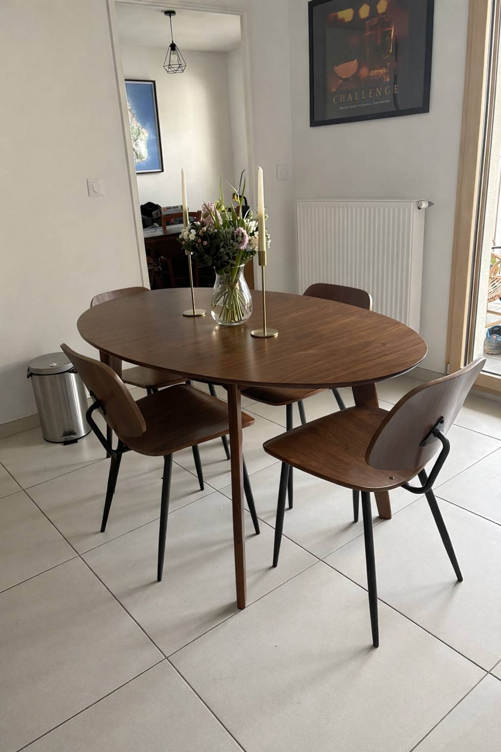 Grâce à ses courbes douces, la table à manger ovale favorise la circulation autour de la table et adoucit visuellement la pièce, tout comme une table ronde. Elle crée une ambiance chaleureuse et facilite les échanges entre les convives, sans angles marqués.