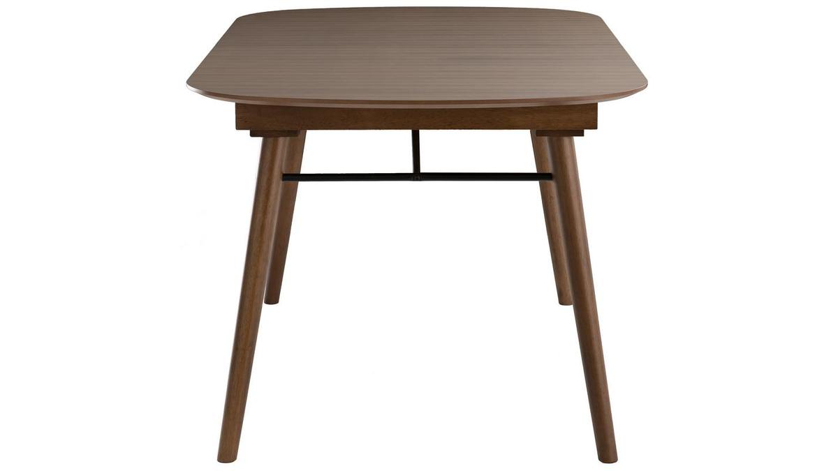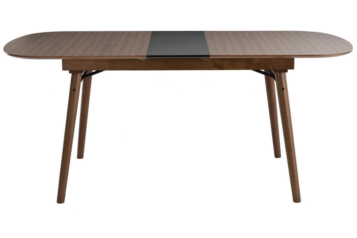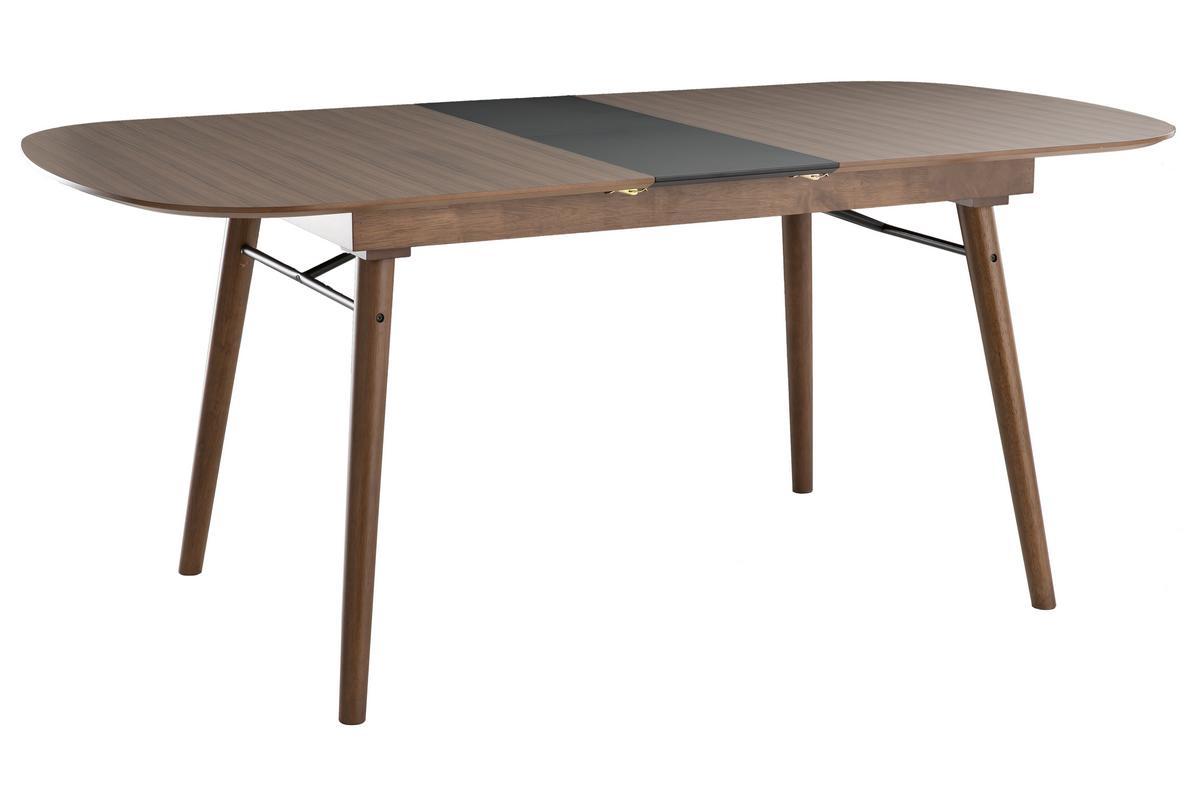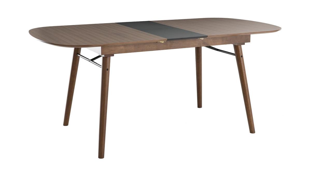 Table extensible rallonges intégrées rectangulaire en bois foncé noyer L150-180 cm SHELDON livrée prête à assembler.