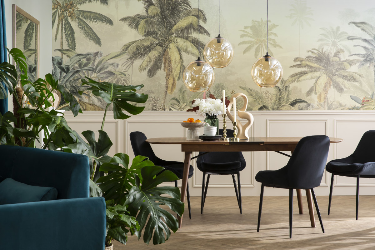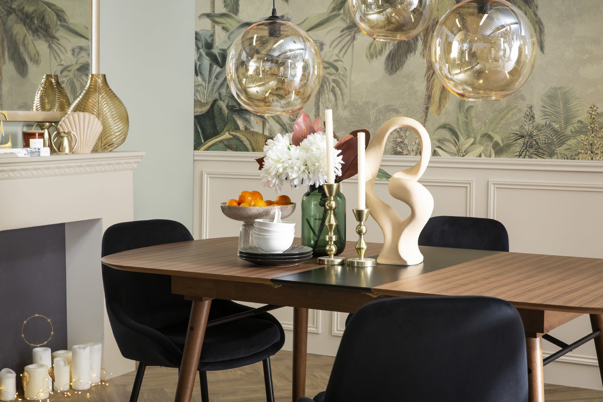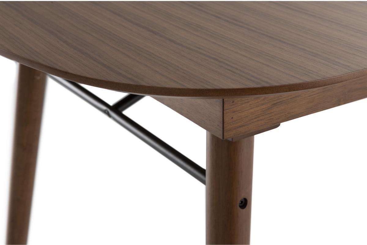 Accompagnée des chaises de la même collection, cette table à manger en bois foncé noyer est idéale pour créer une salle à manger chic, chaleureuse et un brin vintage.