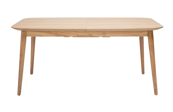 Composée d'un plateau en panneaux de fibres de bois placage chêne (dimensions L160-210 x P89.5 x H75 cm) et soutenue par un piètement en bois hévéa massif, cette grande table extensible 8-10 personnes se tient prête à nimber de douceur l'espace repas de son bois blond lumineux...