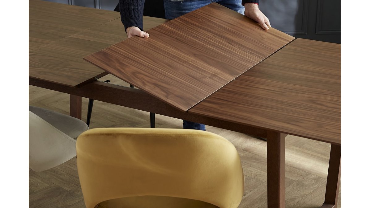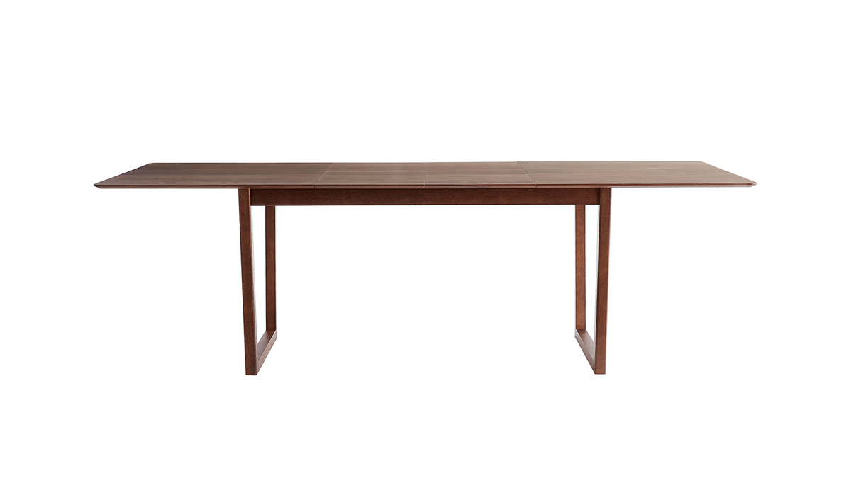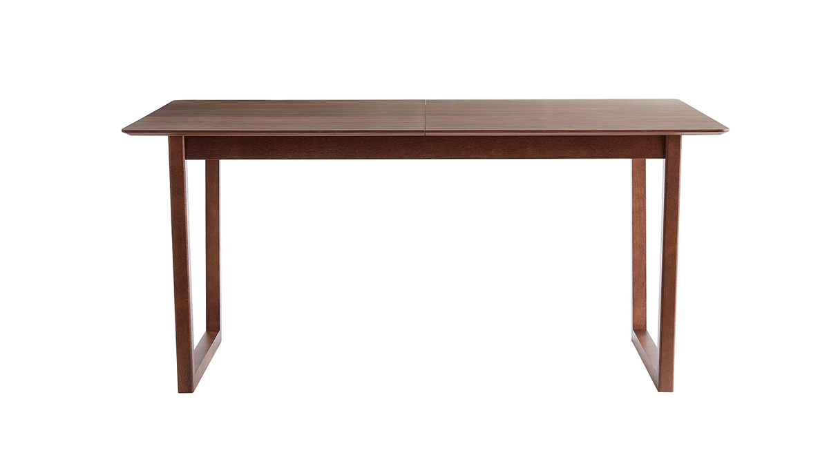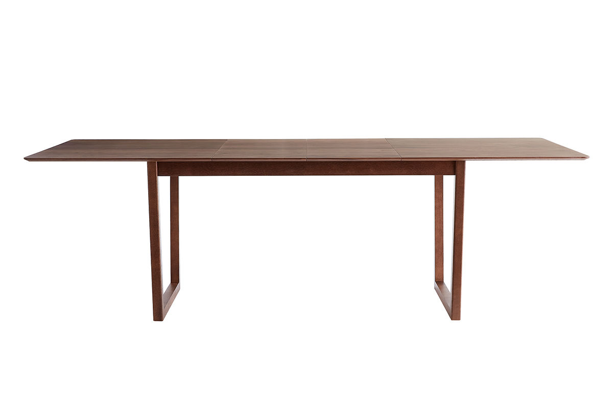 Table extensible rallonges intégrées rectangulaire en bois foncé noyer L160-240 cm LAHO livrée prête à assembler.