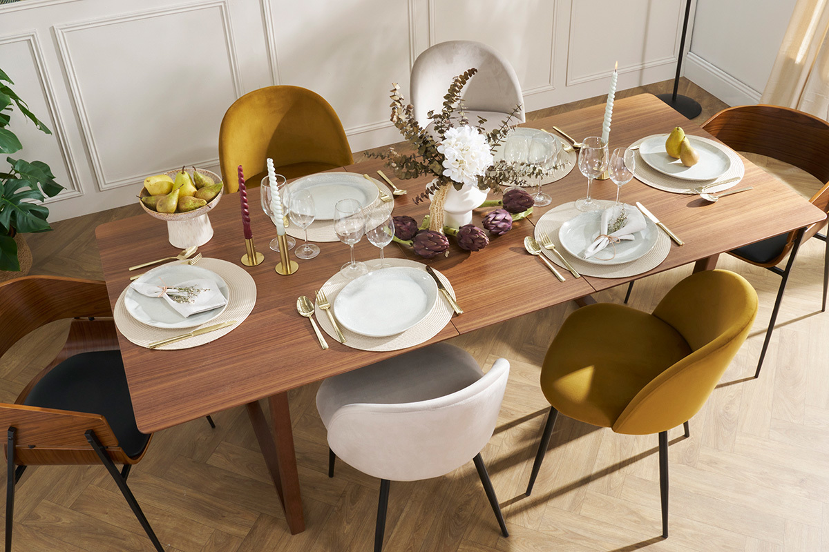 Si dans un salon aux accents rétro chic on l'imagine de toute sa superbe entourée de chaises design au revêtement velours pour un effet glamour à souhait ! Cette table à manger en bois foncé est une valeur sûre en termes de décoration, véritable caméléon, elle s'intègrera dans de nombreux styles d'intérieur.