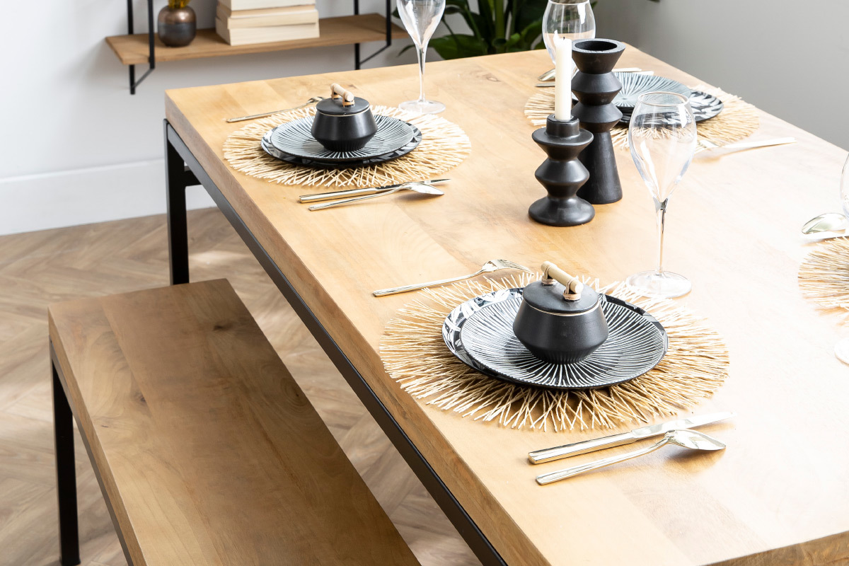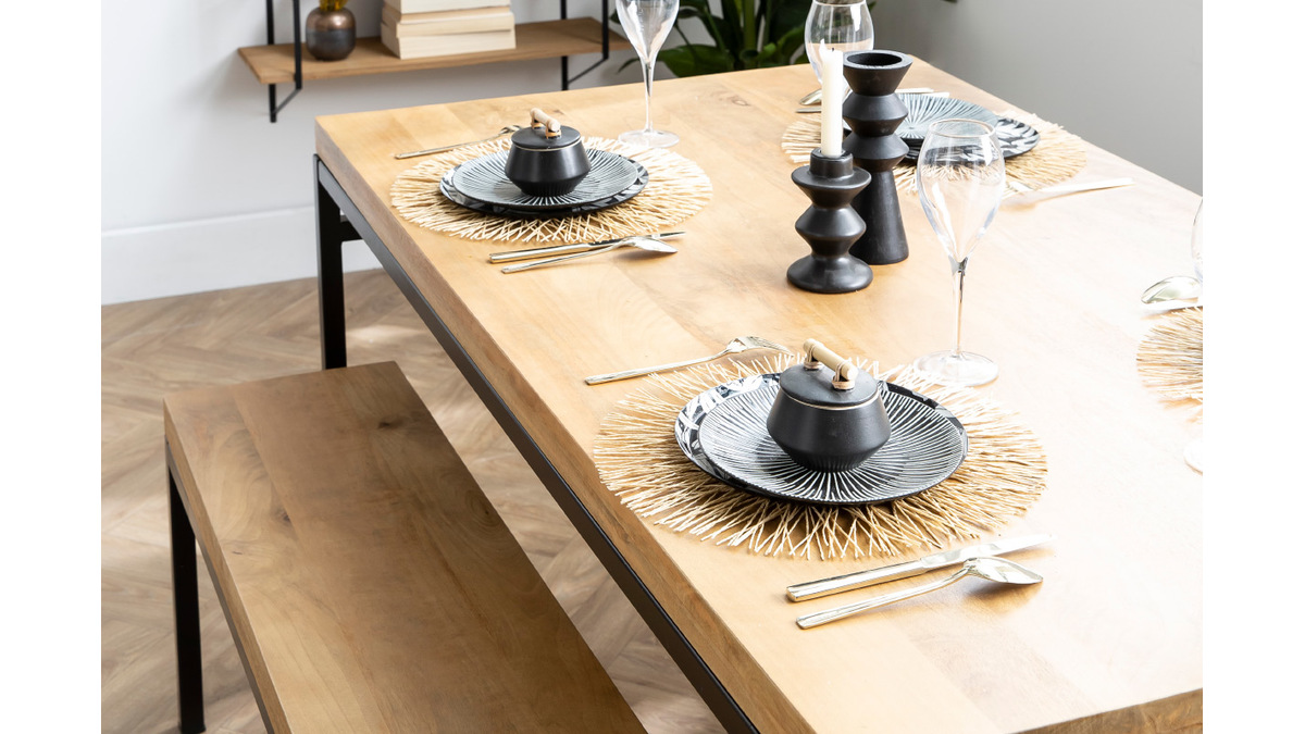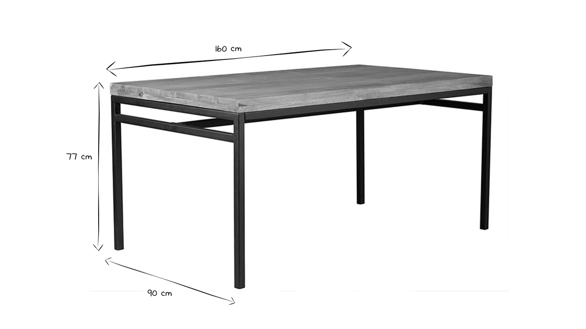 Conçue en manguier brut associé à un piètement en métal, cette table à manger se veut robuste et puissante. Son look 100% industriel en impose. Avec des dimensions égales à 160 x 90cm, cette table en bois massif sera parfaite pour vos repas conviviaux. Pouvant accueillir jusqu'à 6 chaises, vous pouvez associer cette table à manger avec nos chaises New Rock qui restent dans le même esprit "factory" ou bien avec nos chaises Aerial qui contrasteront parfaitement bien avec celle-ci.