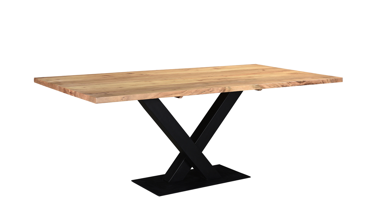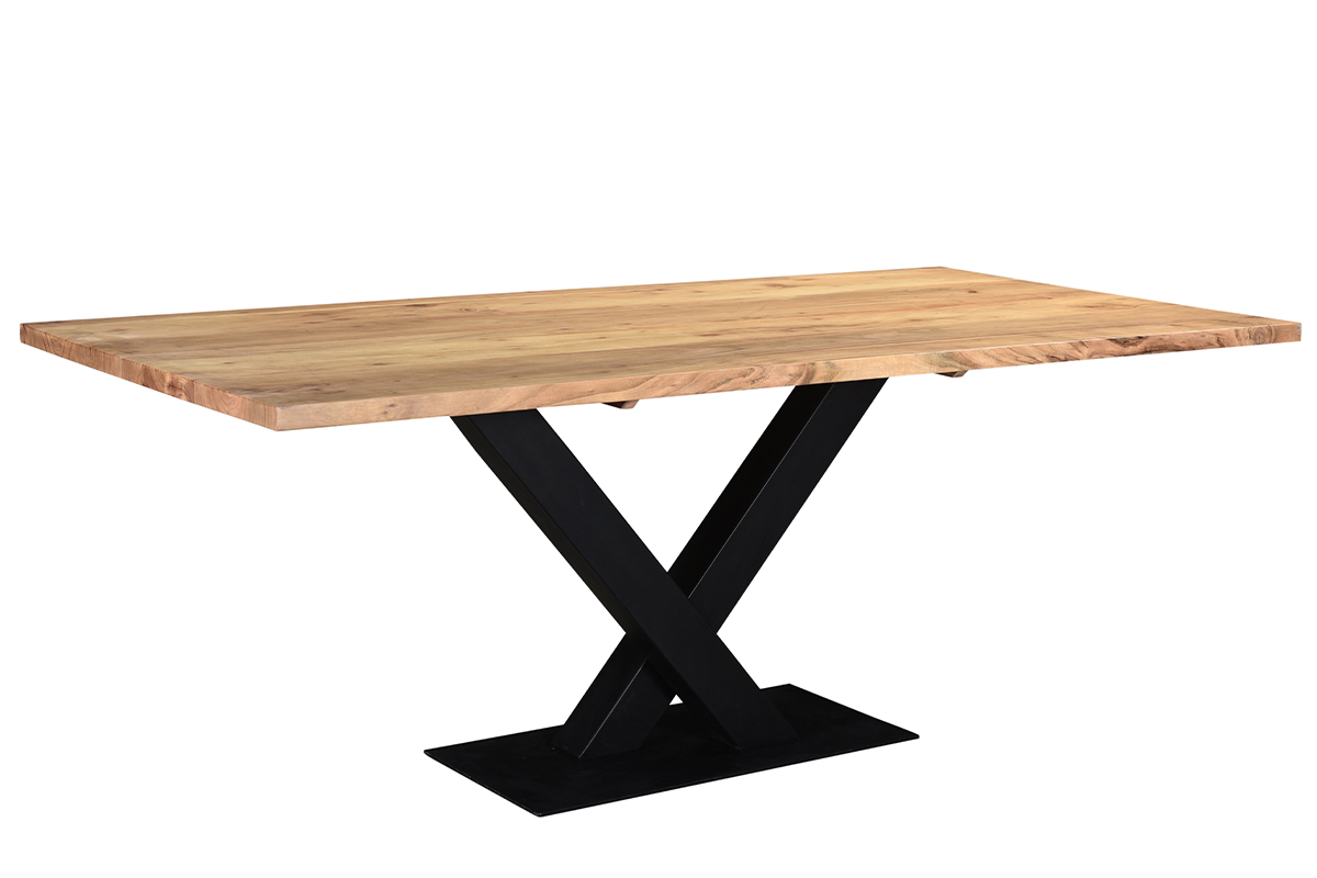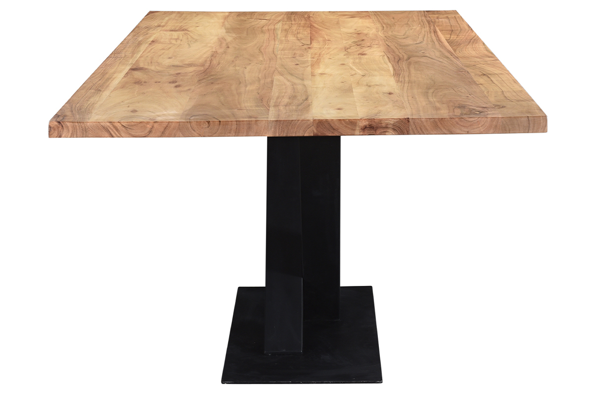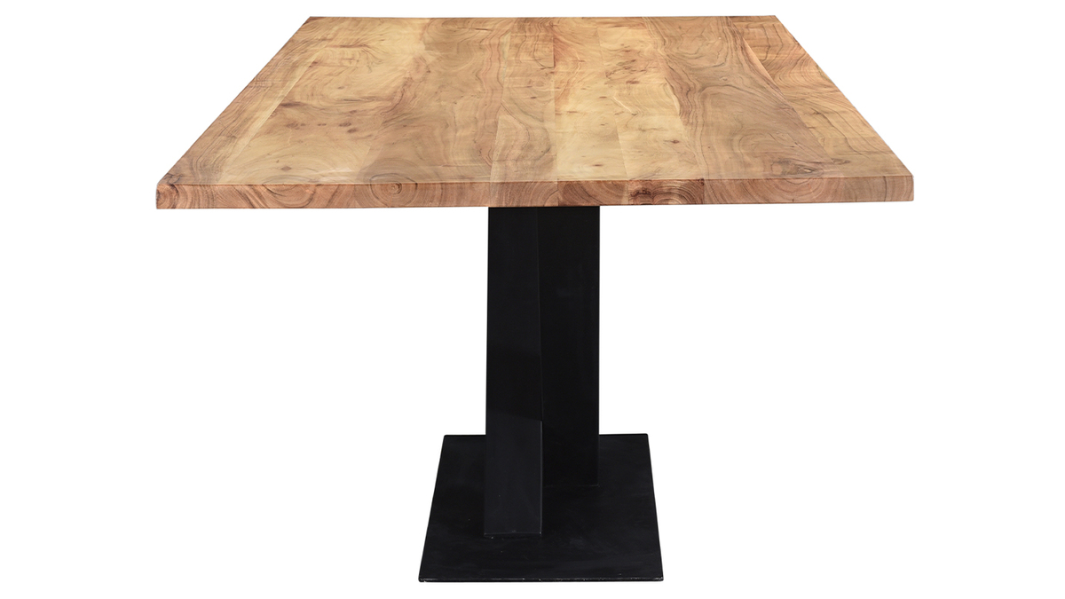 Contemporain, le design du pied central en métal noir contraste avec l'authenticité du plateau en bois acacia massif. Ambiance chaleureuse garantie grâce à cette essence de bois exotique aux nuances ambrées. Grande vedette d'un coin repas à la déco industrielle, dans une spacieuse et accueillante salle à manger, les lignes franches et les volumes assumés de VALLEY attireront sans nul doute tous les regards !