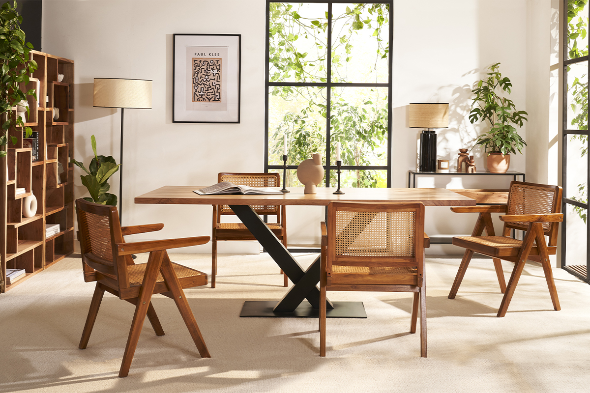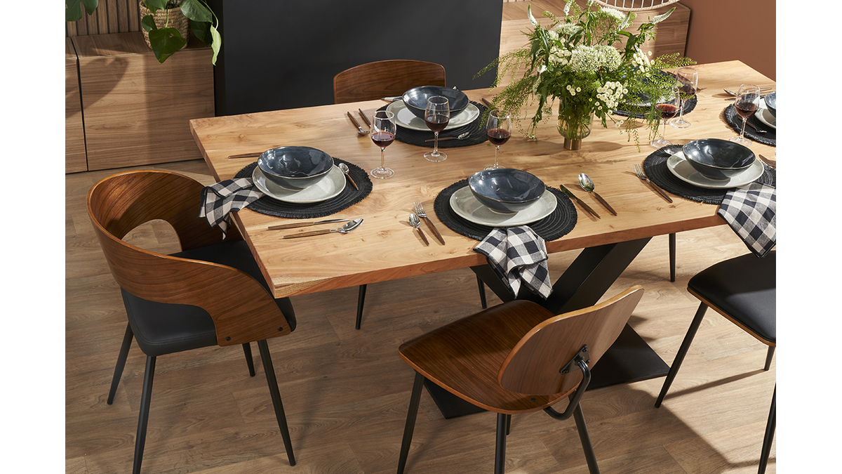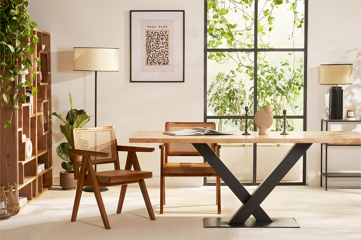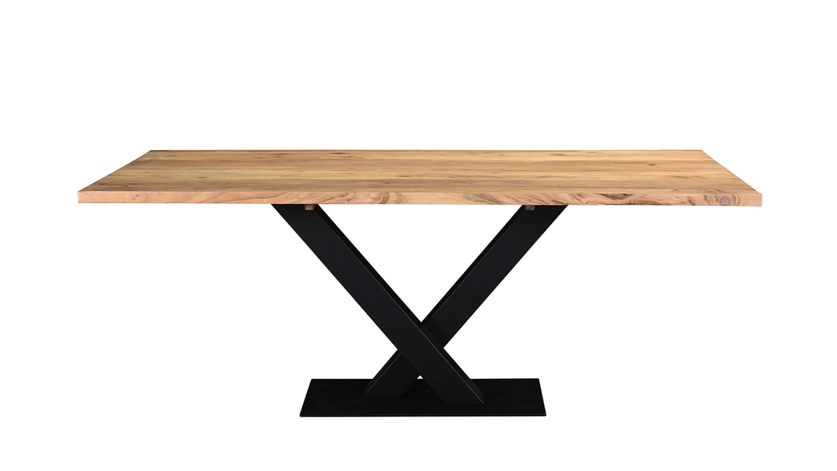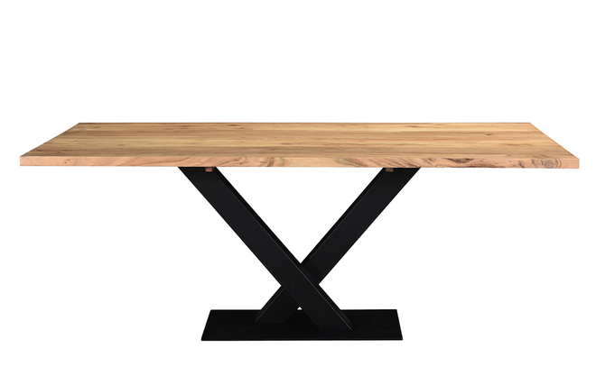 Contemporain, le design du pied central en métal noir contraste avec l'authenticité du plateau en bois acacia massif. Ambiance chaleureuse garantie grâce à cette essence de bois exotique aux nuances ambrées. Grande vedette d'un coin repas à la déco industrielle, dans une spacieuse et accueillante salle à manger, les lignes franches et les volumes assumés de VALLEY attireront sans nul doute tous les regards !