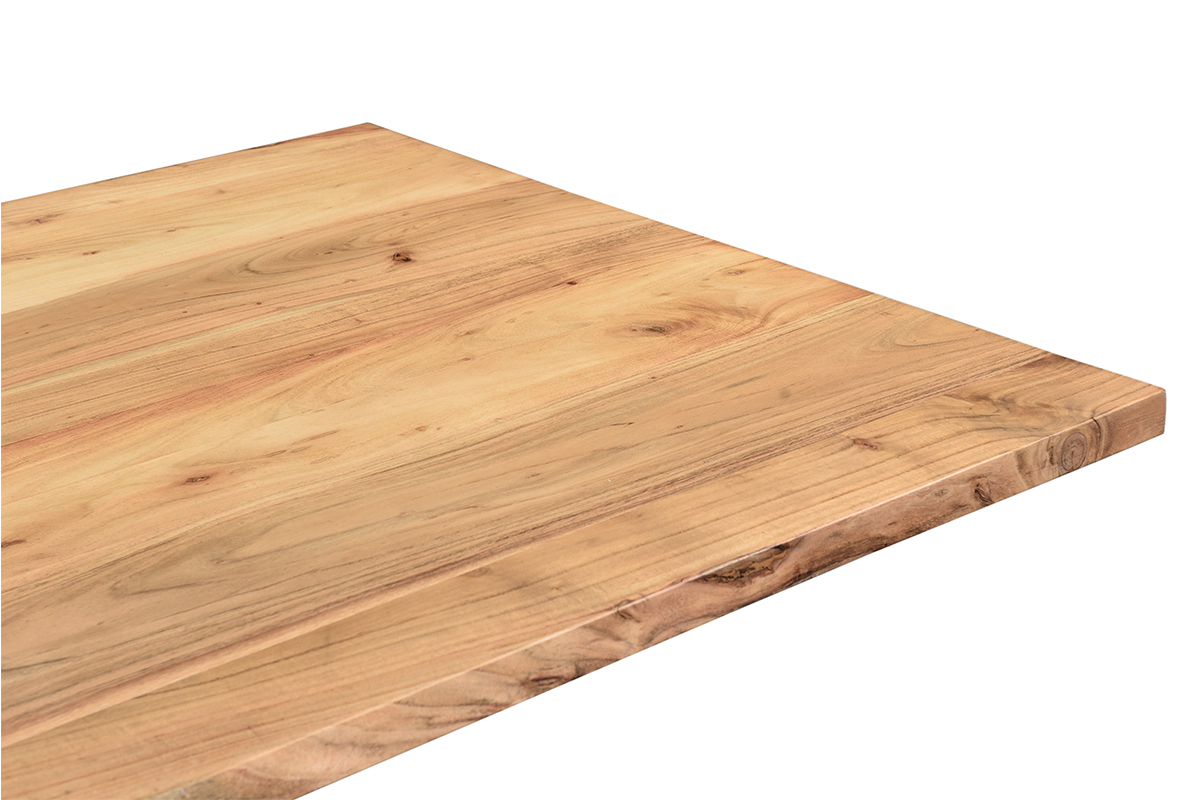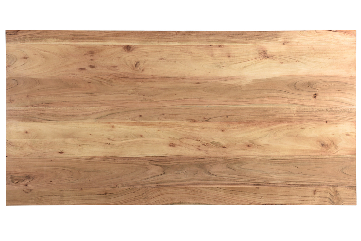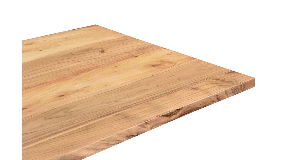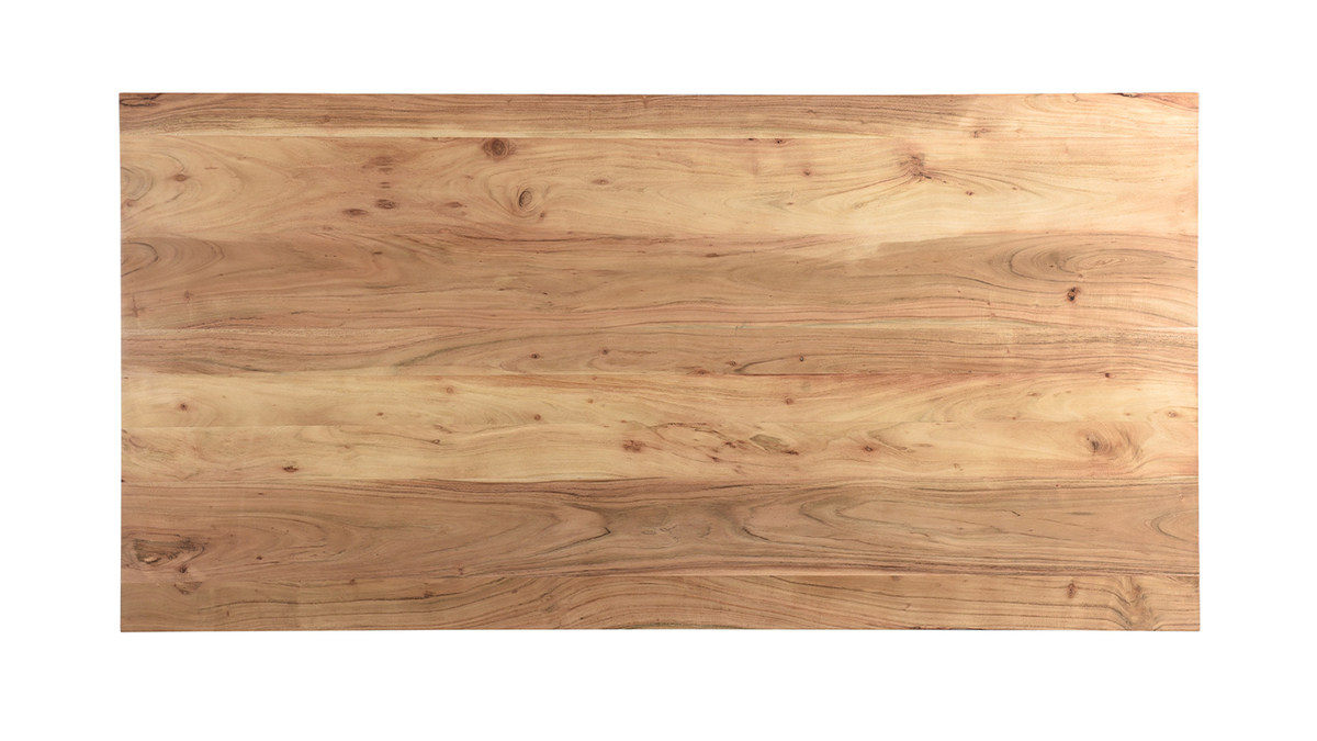 Plébiscitée pour la confection de mobilier d'intérieur, l'acacia est une essence naturellement dure et dense particulièrement esthétique. Ce bois imputrescible, se distingue par ses veinures allongées, mais également ses variations de couleurs. Avec le temps, l'exposition à la lumière et sources de chaleur, l'acacia est un bois clair dont le coloris jaune-vert à doré subit une coloration naturelle (brune, rougeoyante, reflets gris).