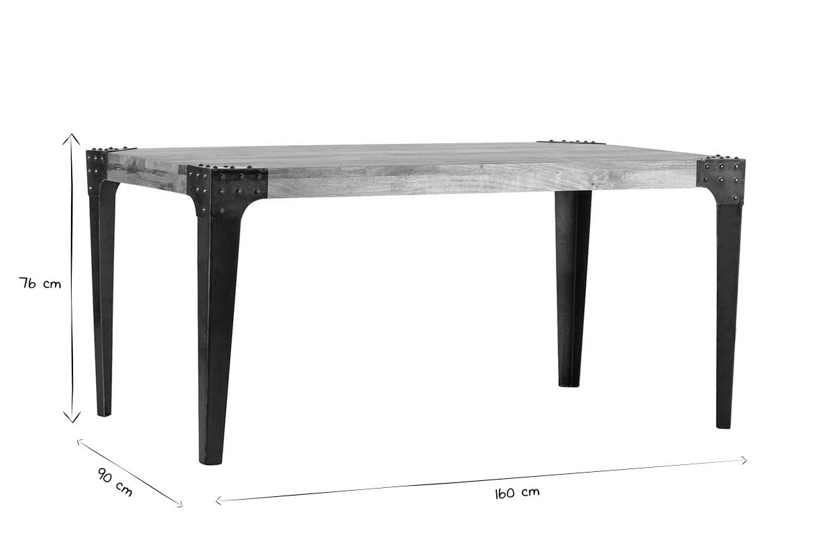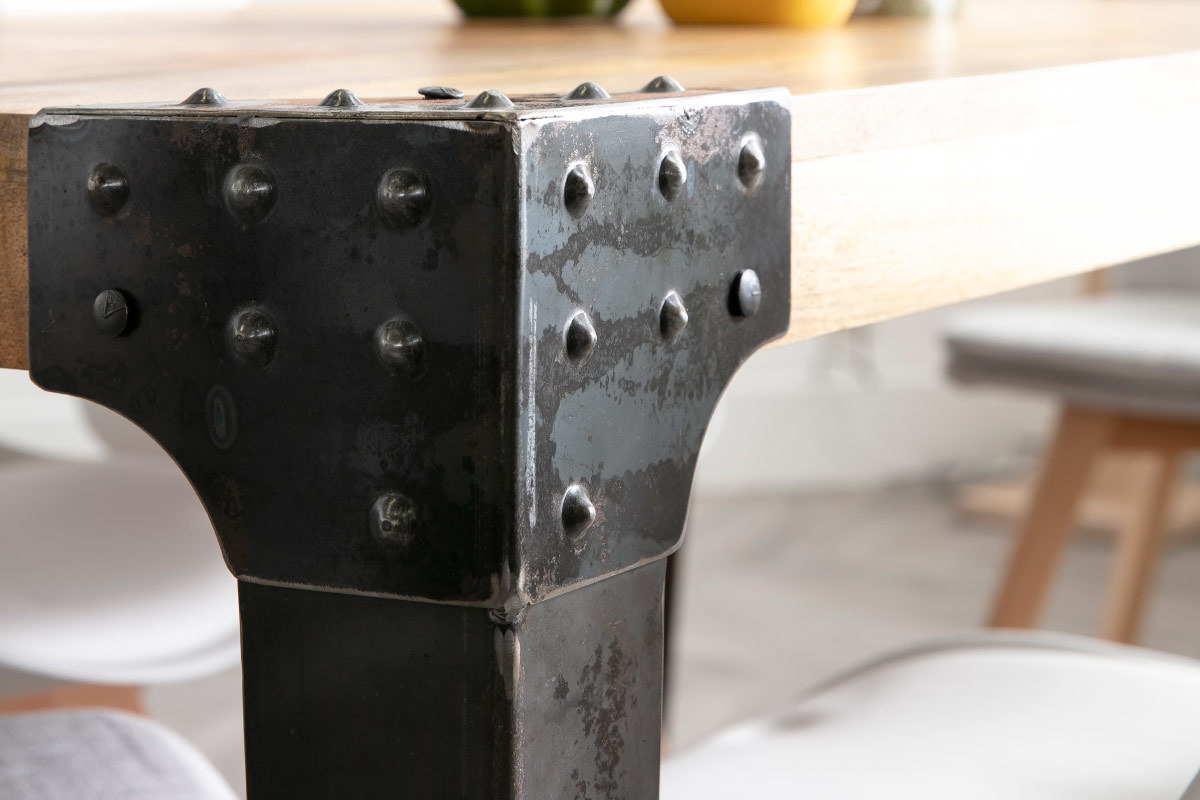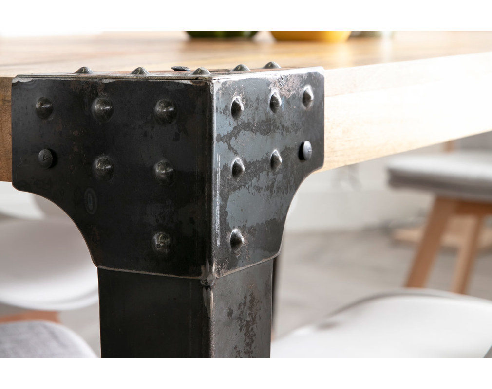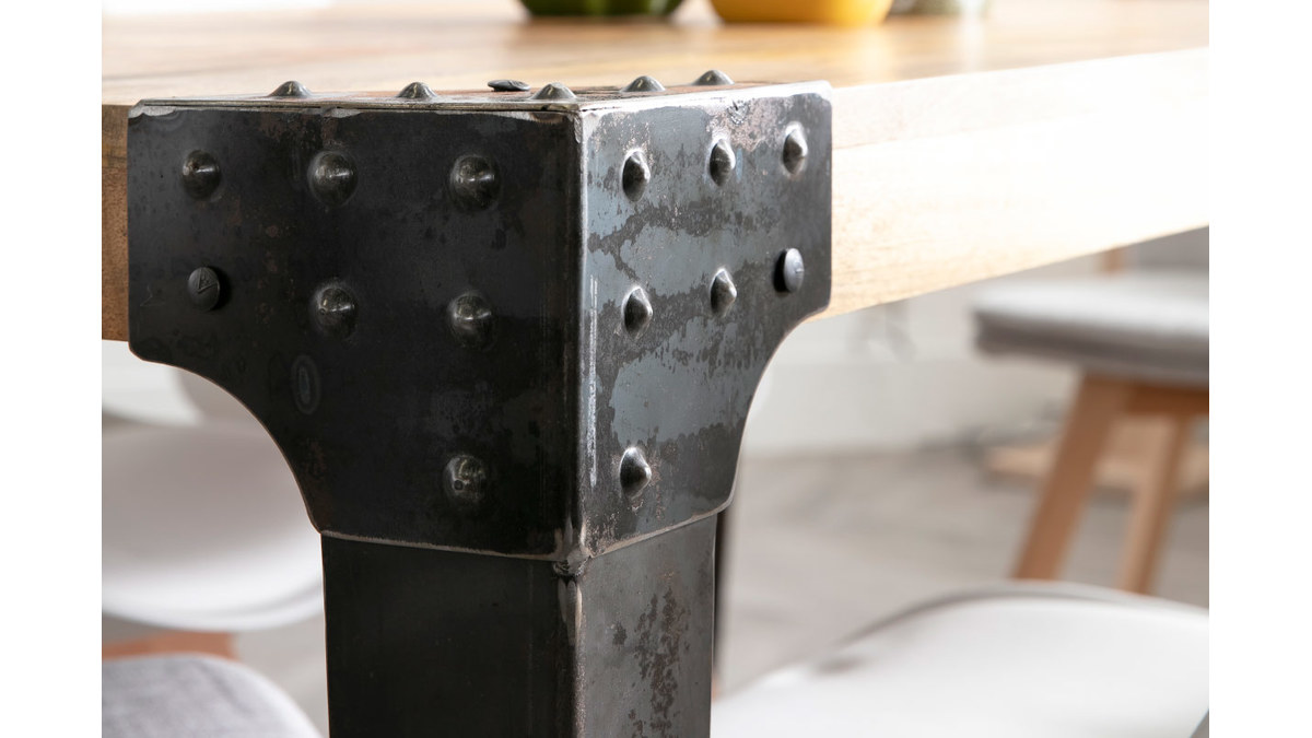 Les angles, renforcés par des cornières rivetées, soutiennent un solide plateau aux dimensions généreuses (L160 x P90 x H76 cm) : c'est la table à manger idéale pour accueillir famille et amis autour d'un bon repas. La table à manger en bois massif MADISON remet au goût du jour les meubles industriels et donnera du caractère à un salon contemporain.