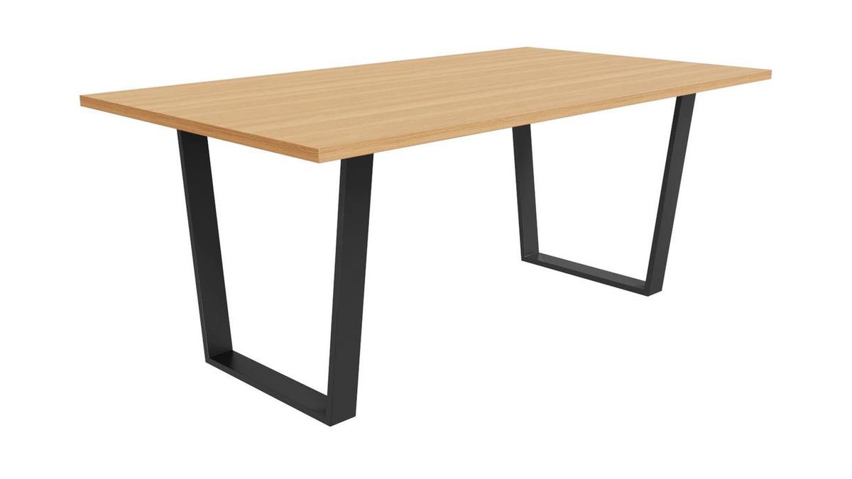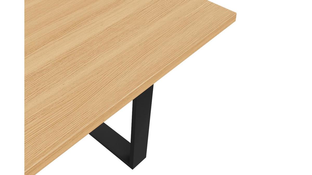 Cette table à l'esprit industriel unit la chaleur d'un plateau en bois à la modernité d'un piètement métallique rigoureux. Le placage en chêne laisse naturellement transparaître les veinures du bois.