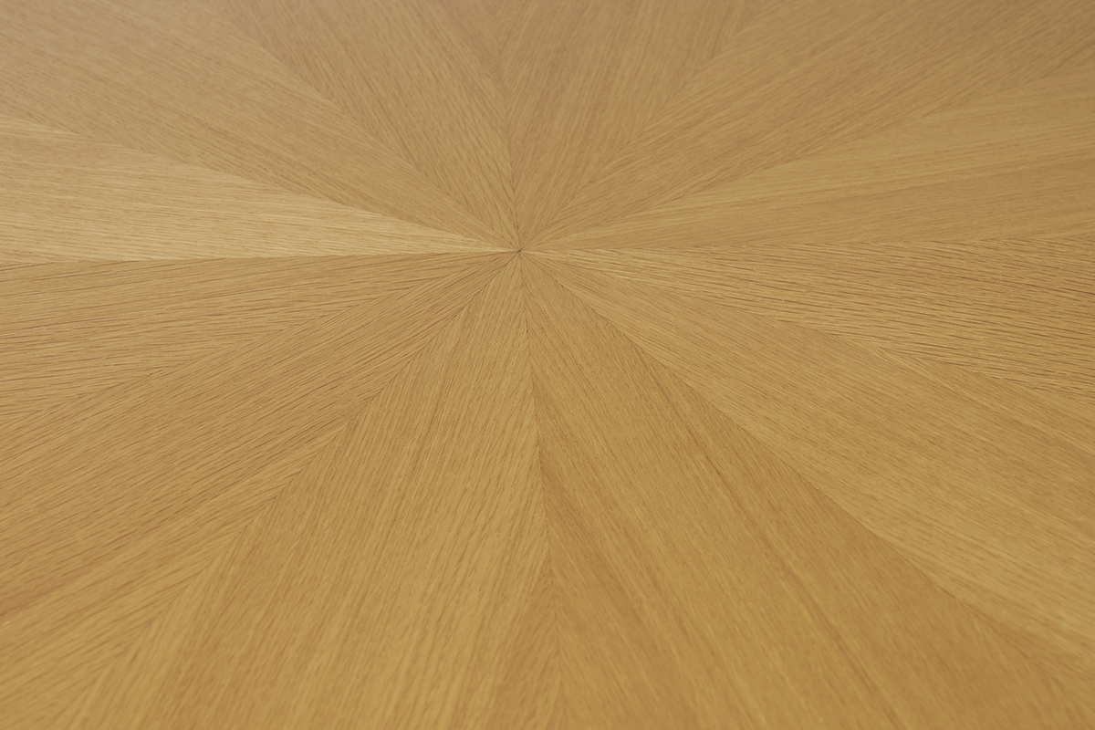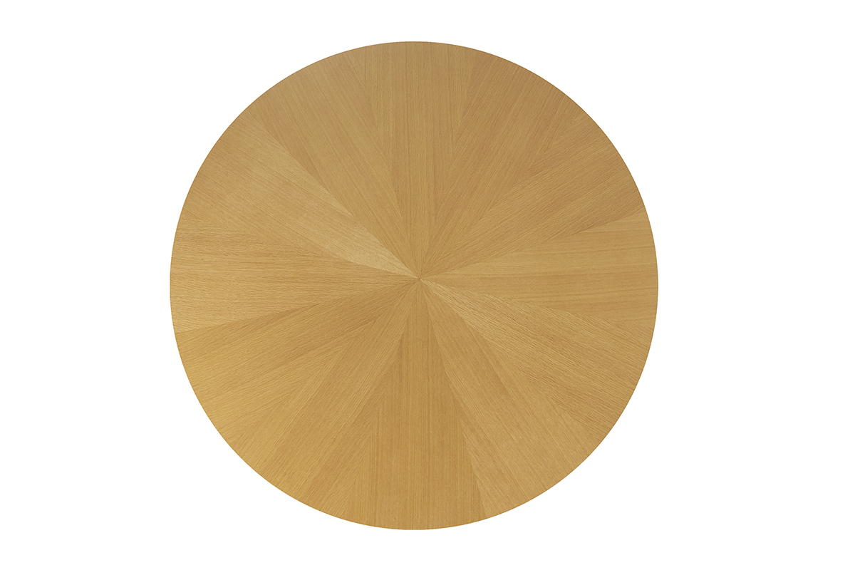 Cette pièce d’exception conjugue avec brio modernité, chaleur du bois et design sculptural. Son plateau de 137 cm de diamètre, en panneaux de fibres de bois placage chêne de qualité, séduit au premier regard par son plateau en étoile : un motif géométrique raffiné qui capte la lumière et met en valeur les nuances naturelles du bois. Ce détail soigné confère à la table à manger DITA un caractère à la fois authentique et contemporain, idéal pour rehausser tout type d’intérieur.