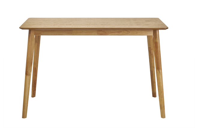 Le plateau en panneaux de fibres de bois placage frêne repose sur de solides pieds en hévéa massif. On aime particulièrement les reflets dorés du bois ainsi que ses jolies veines et noeuds qui renforcent son caractère vivant.