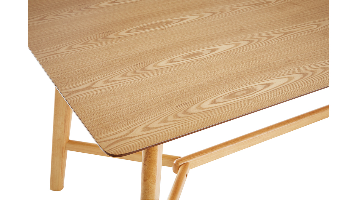 Allure raffinée et praticité font ici bon ménage ! Tandis que les quatre solides pieds fuselés en hévéa massif garantissent une belle stabilité, le robuste plateau (L180 x P90 x H75 cm) en panneaux de fibres de bois placage frêne accueillera volontiers 4 à 6 couverts. Synonyme de plaisir et de convivialité, pour un usage quotidien cette table à manger rectangulaire se veut facile d'entretien et pérenne.