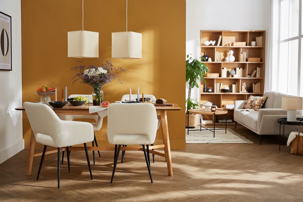 En bois foncé du même effet ou en tissu velours ultra glamour, habillez KARA de chaises confortables et design !