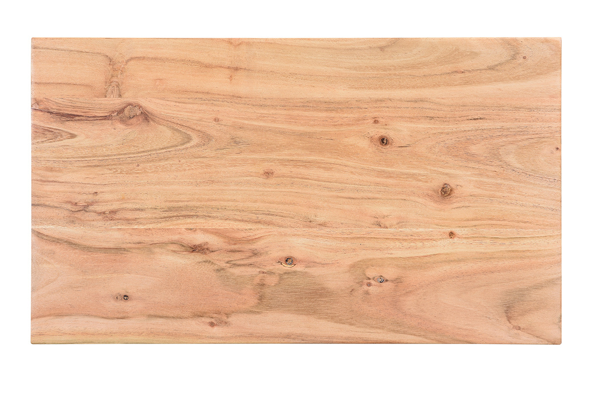 Plébiscitée pour la confection de mobilier d'intérieur, l'acacia est une essence naturellement dure et dense particulièrement esthétique. Ce bois imputrescible, se distingue par ses veinures allongées, mais également ses variations de couleurs. Avec le temps, l'exposition à la lumière et sources de chaleur, l'acacia est un bois clair dont le coloris jaune-vert à doré subit une coloration naturelle (brune, rougeoyante, reflets gris).