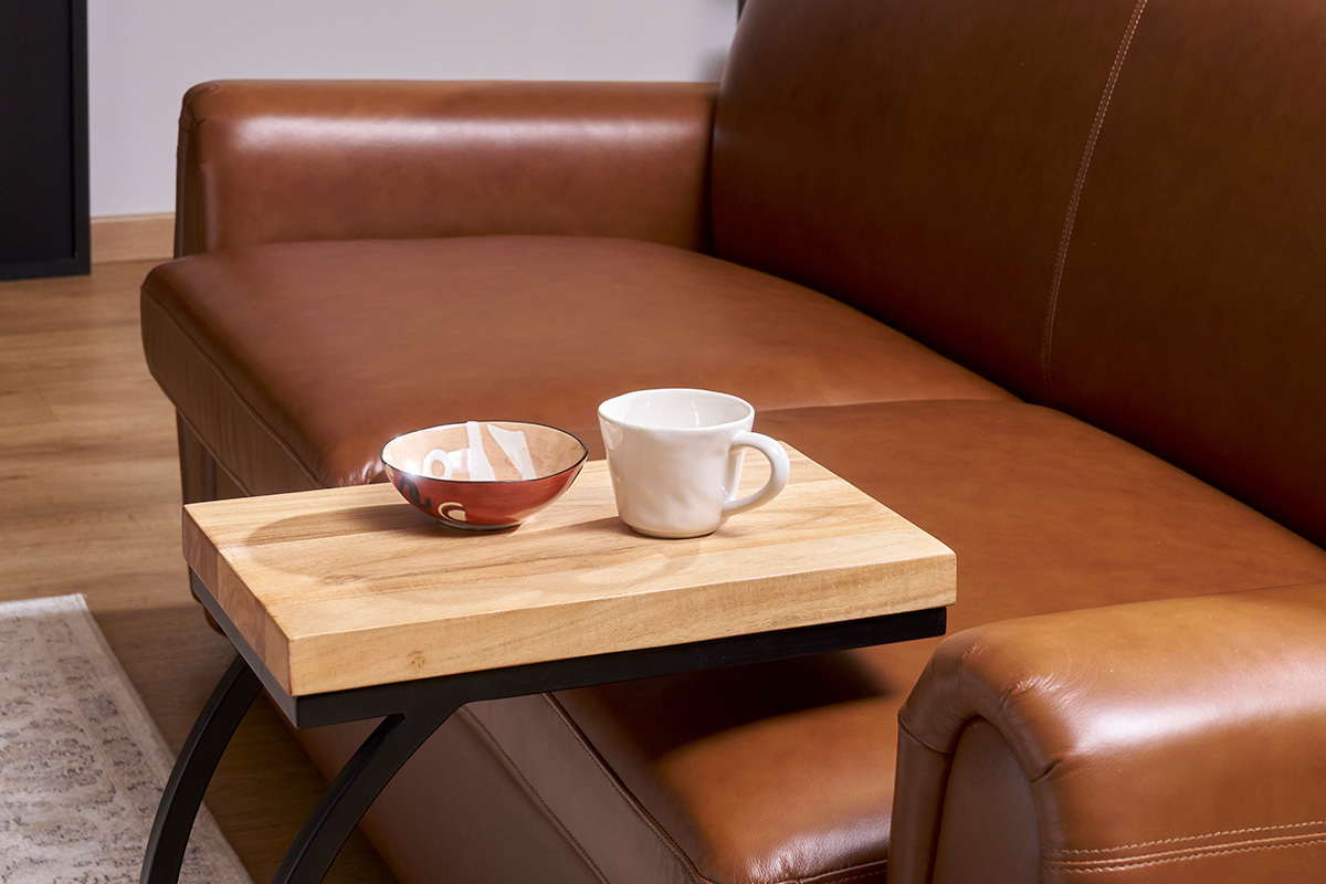 fauteuil. Le plateau placé à bonne hauteur d'utilité est ainsi parfait pour accueillir une lecture, votre boisson préférée ou encore une tablette.