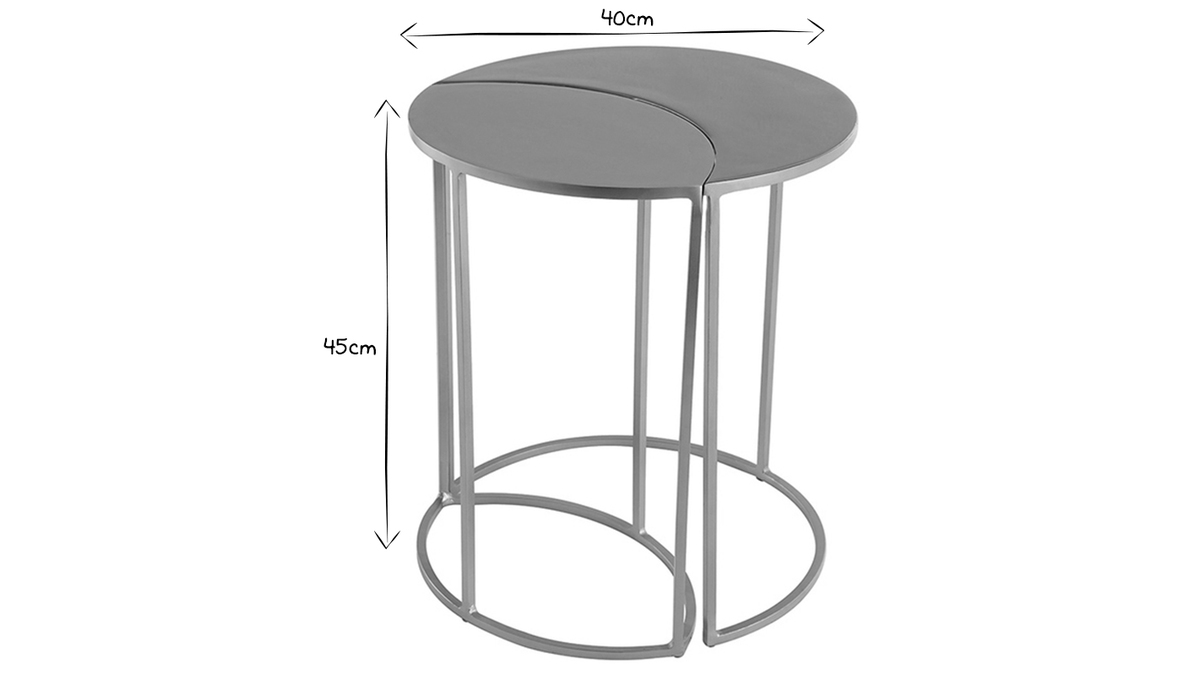 Ce duo de tables d'appoint peut vivre ensemble ou séparément en fonction de vos envies du moment. Les deux plateaux peuvent être accolés (diamètre 40 cm) ou placés loin l'un de l'autre... C'est vous qui choisissez !