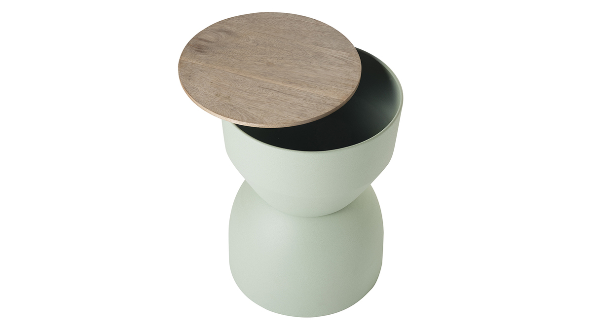 Avec une structure originale en métal vert céladon et un plateau amovible en manguier massif, YOYO donne instantanément le tempo. Au look unique un tantinet ludique, cette petite table se tient prête à rythmer toutes les pièces de la maison, de la chambre au salon ! Elle vous plaira autant en guise de bout de canapé, accompagnée d'une table basse, ou encore en tant que table de chevet.