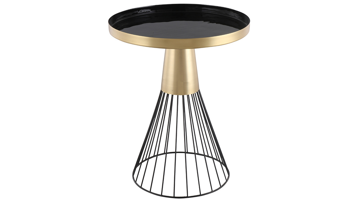 Table d'appoint ronde en acier laqué noir et doré D41 cm SPLEEN