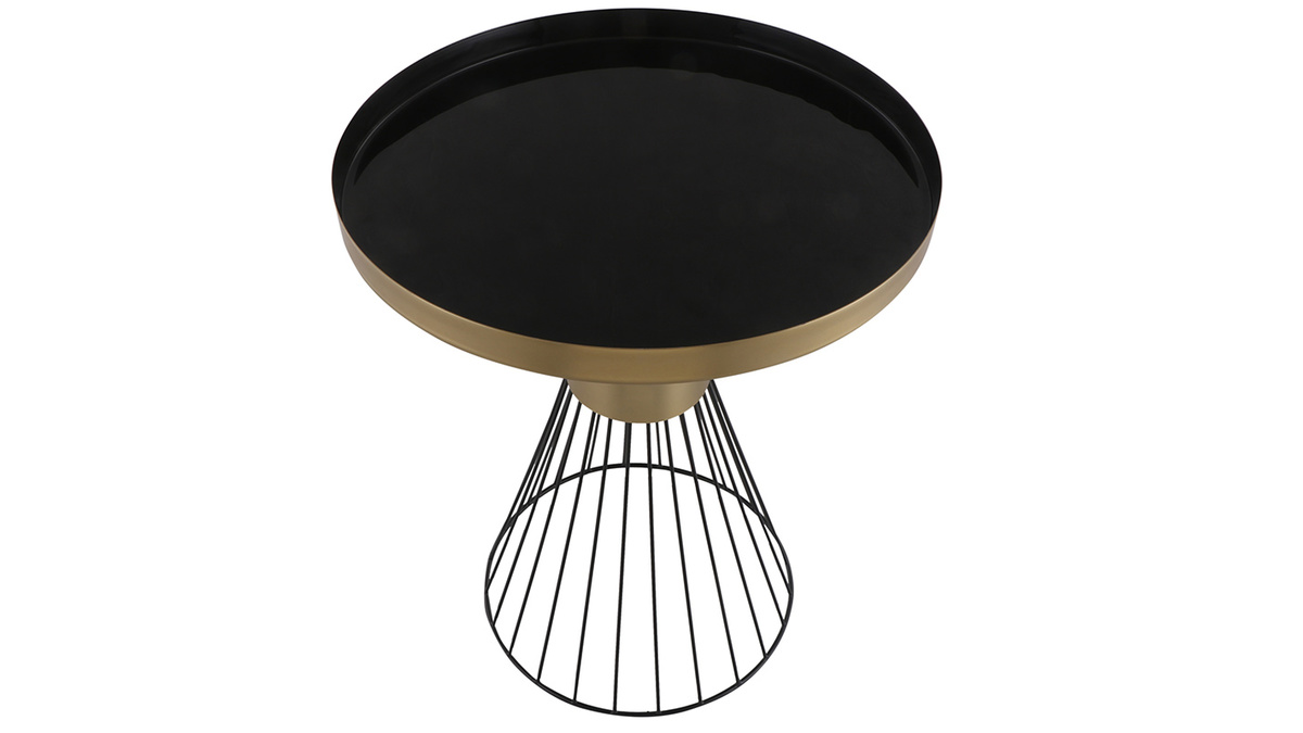 Table d'appoint ronde en acier laqué noir et doré D41 cm SPLEEN
