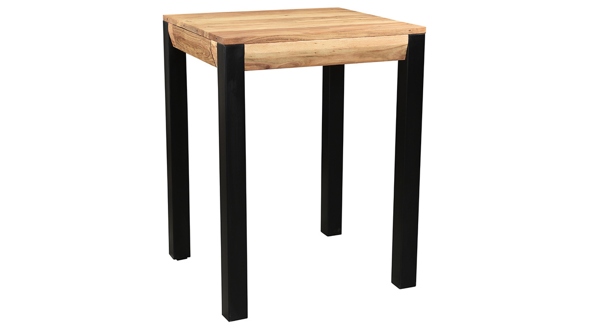 Table de bar en acacia livrée prête à assembler. Seuls les pieds sont à fixer.