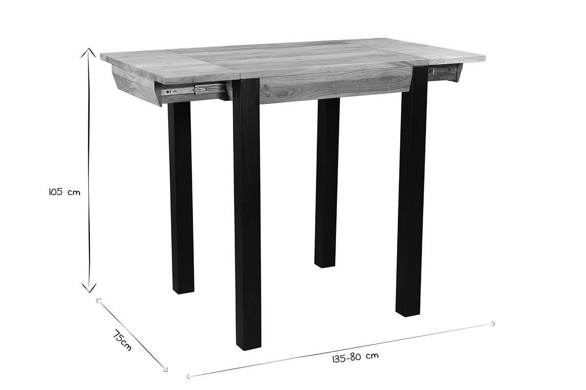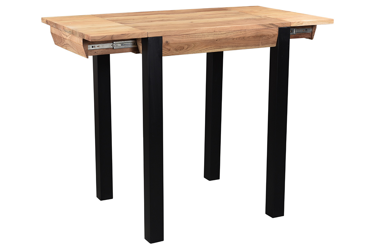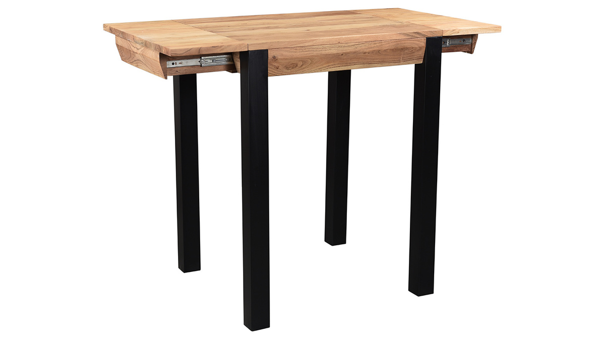 Avec son magnifique plateau en acacia massif et son piètement épais en métal noir, cette table bar extensible est une pièce de mobilier pleine de charme. On retrouve dans les nervures et les jolis tons chauds de l'acacia tout le caractère des meubles en bois massif. Cette table bar authentique a été conçue artisanalement avec des matériaux nobles. Chaque pièce est unique et réflète un savoir-faire particulier.