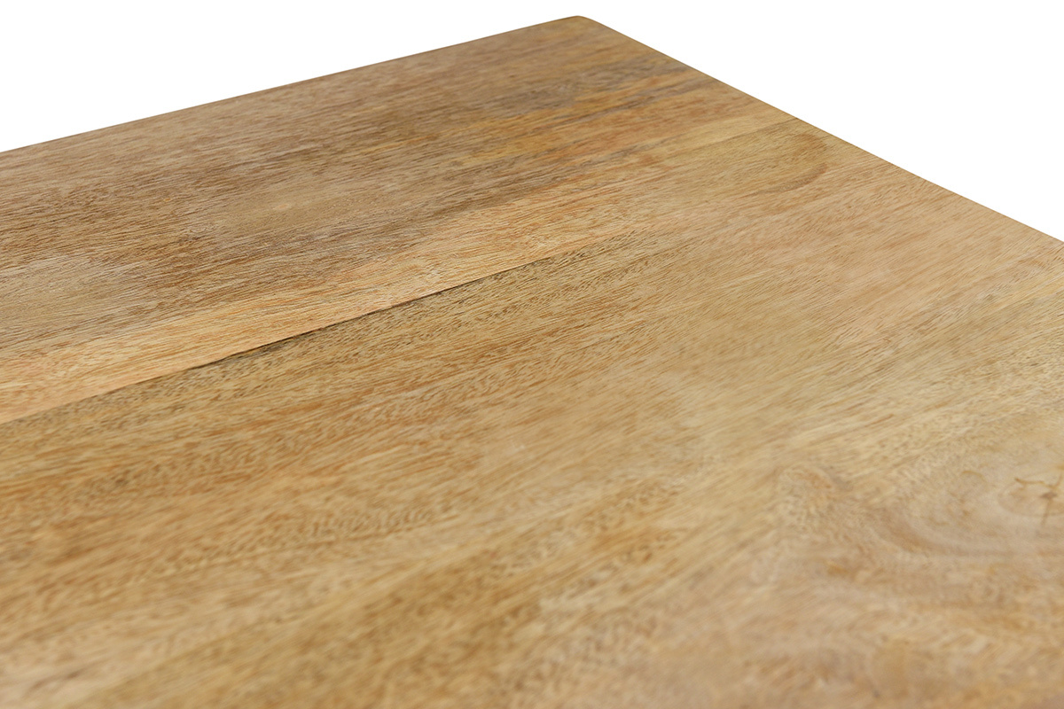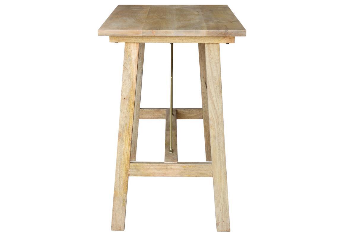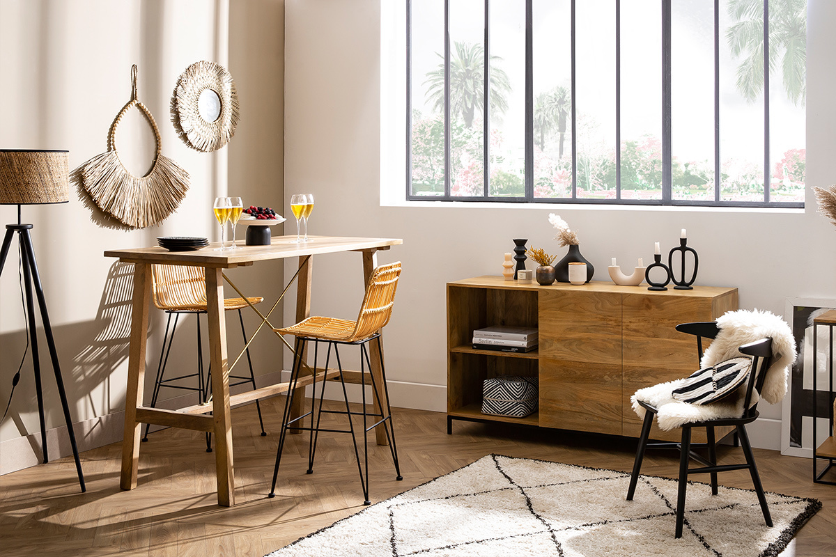 On a tous l'image de ces grandes tables à manger style atelier en chêne massif, que l'on trouve dans les maisons de campagne. La table MARGHA se différencie d'elles car je l'ai imaginée en version table haute pour 4 personnes et en manguier massif. Elle s'intègrera parfaitement même dans les plus petites cuisines et vous offrira un plan de travail supplémentaire.