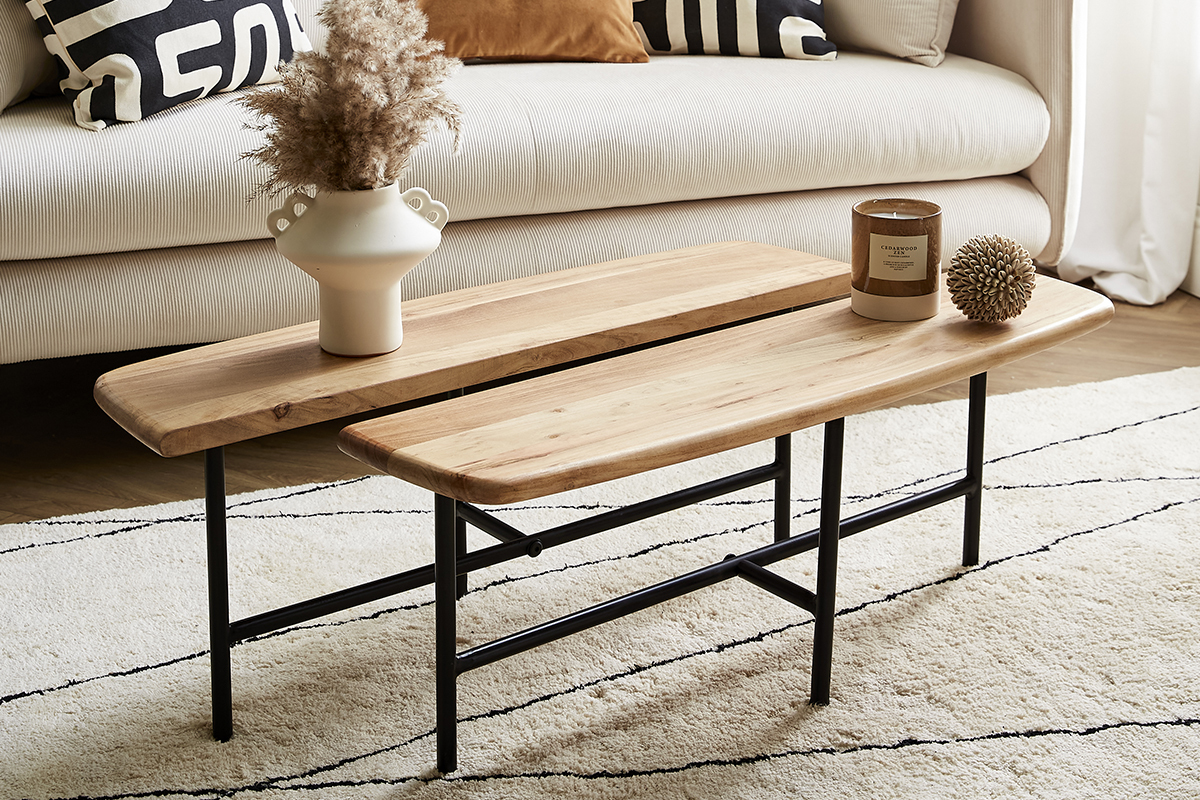 Si le bois nuancé et le piètement noir trouveront leur place avec style dans un séjour à l'ambiance ethnique chic, cette table basse gigogne apportera également une note chaleureuse et design dans un salon à la déco contemporaine ou industrielle.