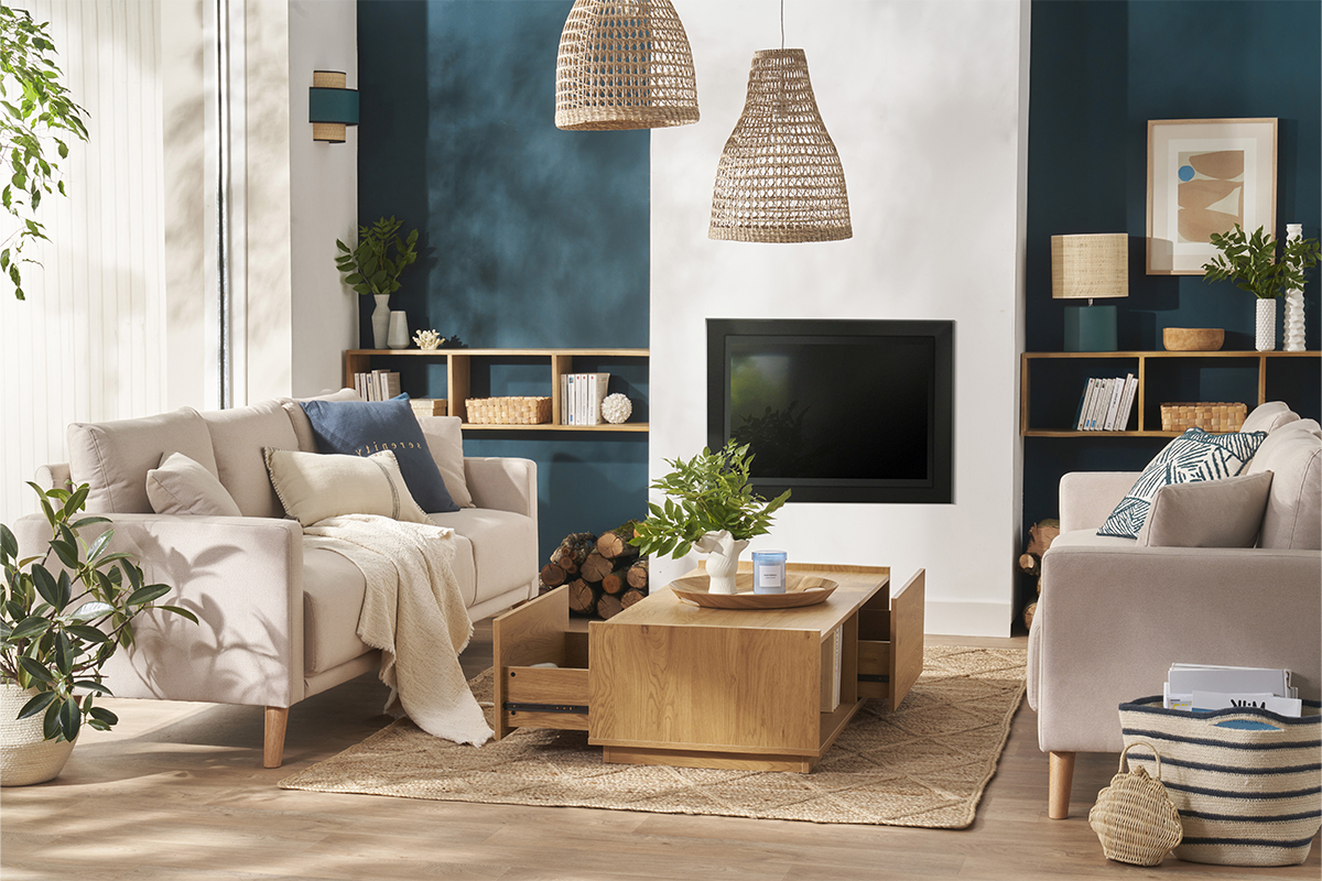 Petit-déjeuner réconfortant, goûter gourmand, apéritif intimiste ou encore plateau-télé improvisé, cette table basse familiale aux dimensions L119.8 x P59.6 x H35.5 cm deviendra indéniablement la pièce centrale du salon, celle autour de laquelle s'articulera vos différentes activités, vos temps de partage et vos moments forts.