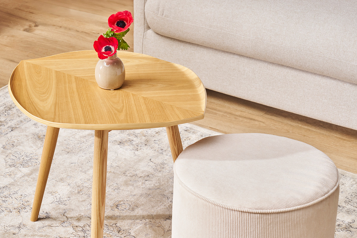 Avec son design épuré, son esprit nature et son piètement en frêne massif, c'est également une petite table qui accompagnera parfaitement un canapé scandinave. Elle dispose de trois pieds pour une stabilité optimale et équilibrée.