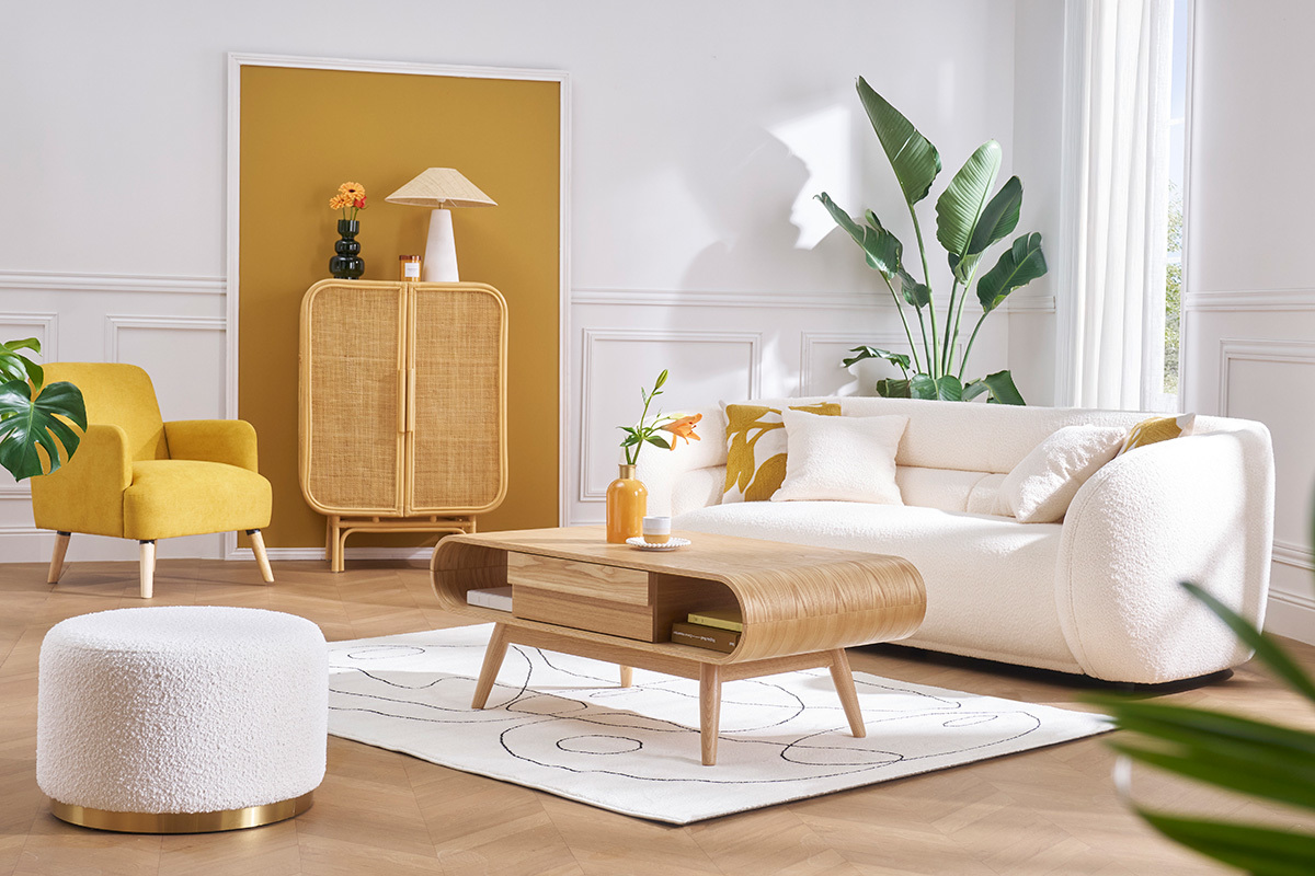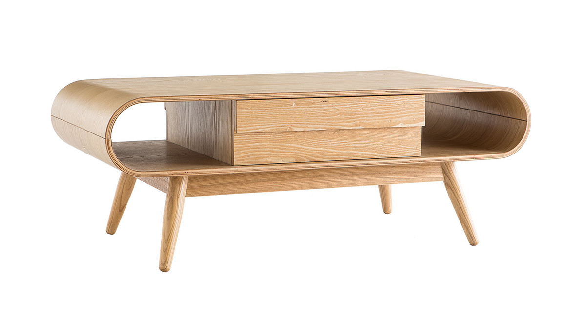 Un véritable coup de coeur pour la table basse scandinave BALTIK ! D'inspiration scandinave, son design tout en rondeur apportera une touche vintage et beaucoup de chaleur à votre salon. Très pratique, elle bénéficie de rangements astucieux et très bien conçus : un tiroir central délimite deux niches qui peuvent accueillir des livres ou de petits objets.
