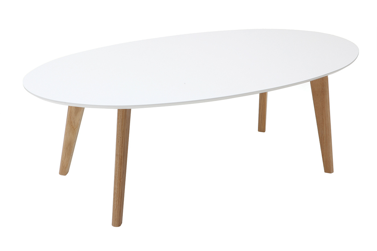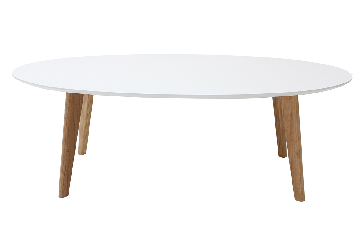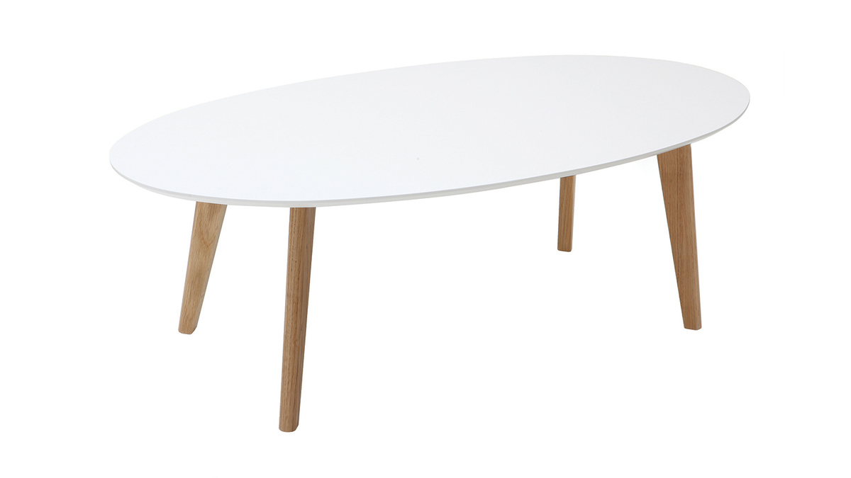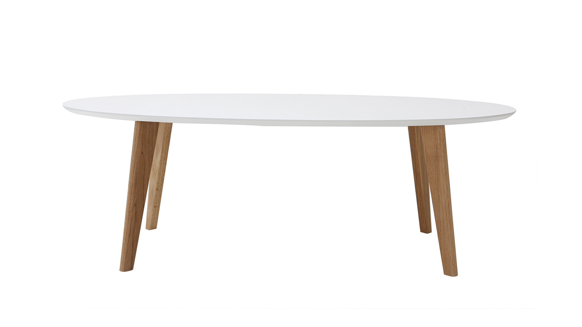 Au look scandinave, cette table basse blanc et bois se veut épurée pour se marier en toute facilité à votre décoration d'intérieur. En plus de ces teintes aussi naturelles que lumineuses, son design ovale et ses pieds en compas la façonnent comme une table délicate au charme intemporel.