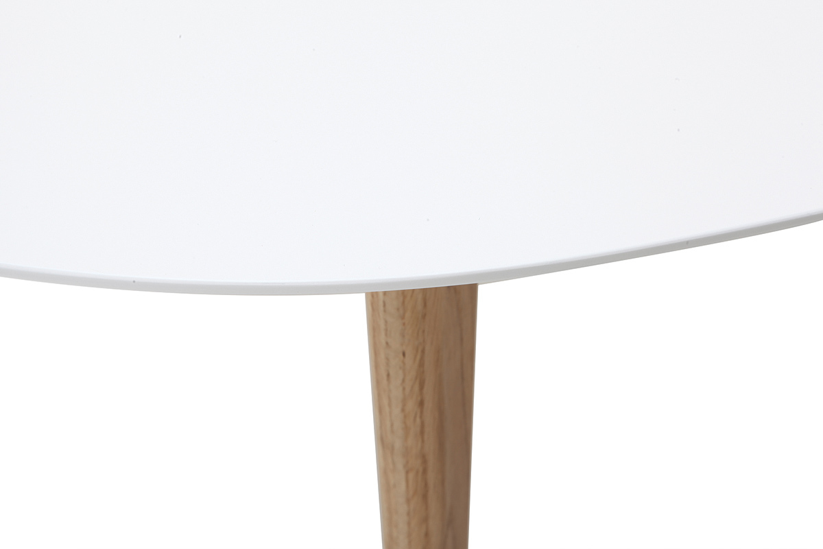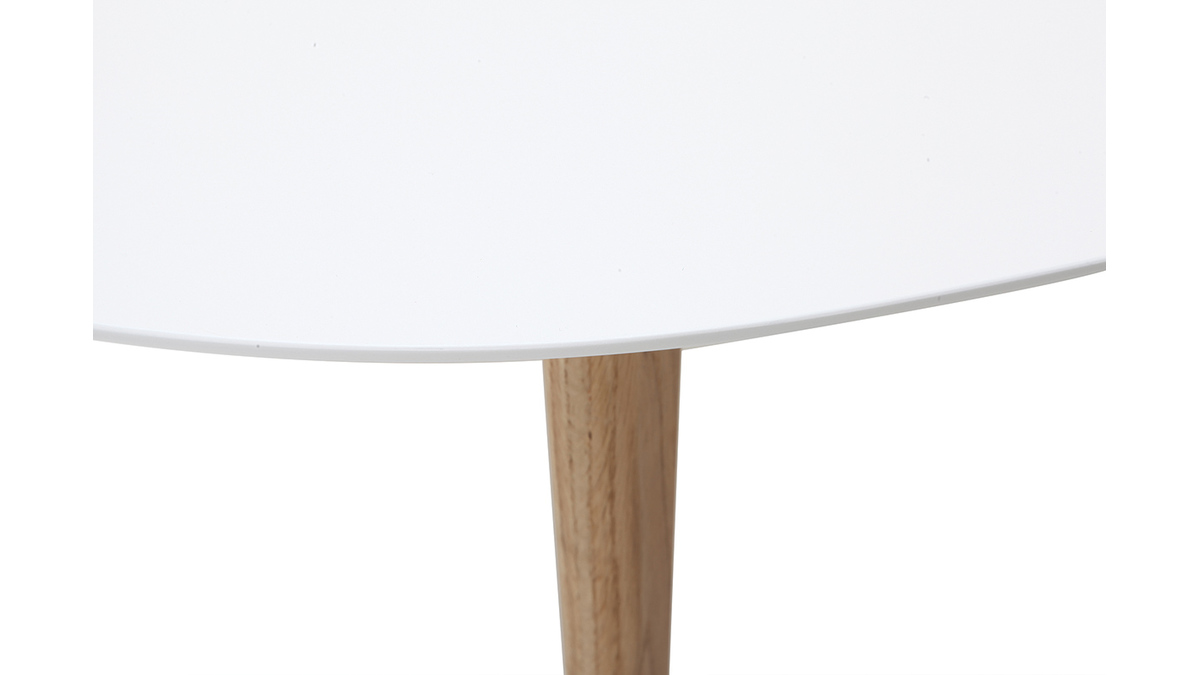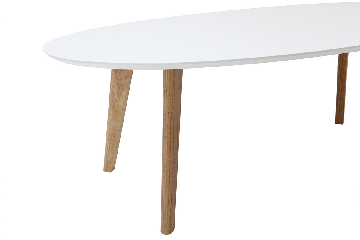 Au look scandinave, cette table basse blanc et bois se veut épurée pour se marier en toute facilité à votre décoration d'intérieur. En plus de ces teintes aussi naturelles que lumineuses, son design ovale et ses pieds en compas la façonnent comme une table délicate au charme intemporel.