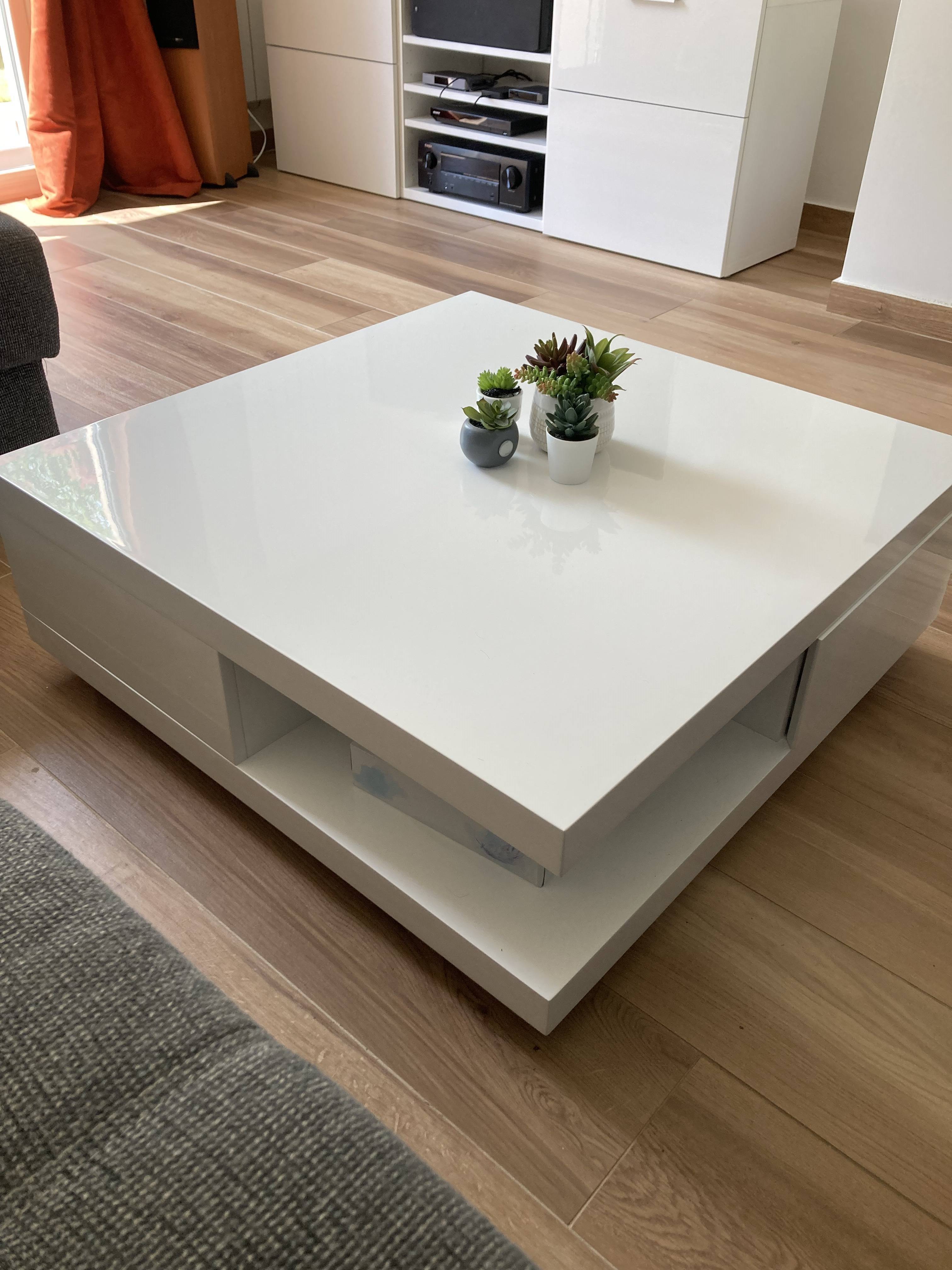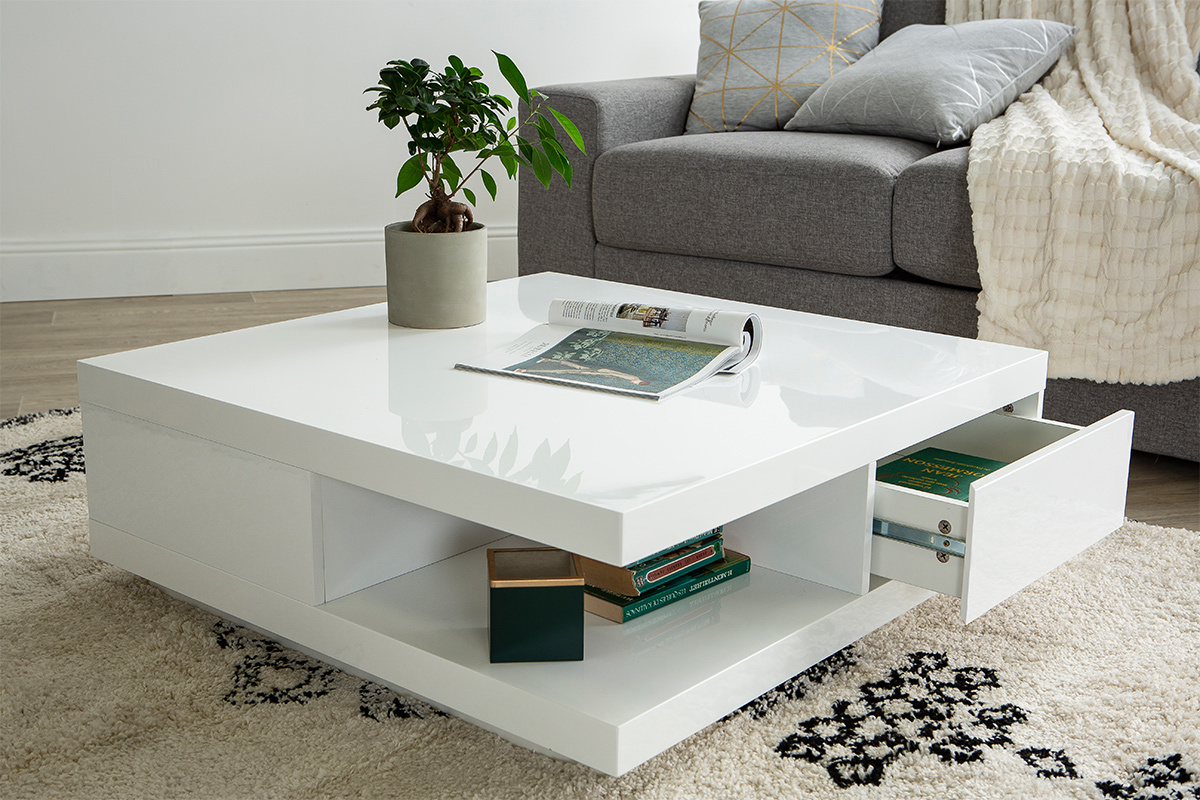 En panneaux de fibres de bois avec une finition blanc brillant qui apportera de l'éclat à votre intérieur, cette table basse blanche vous séduira par son allure hautement moderne.