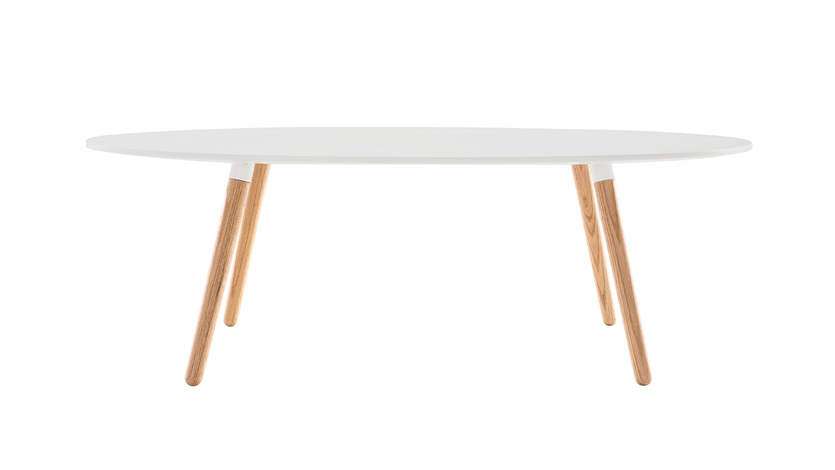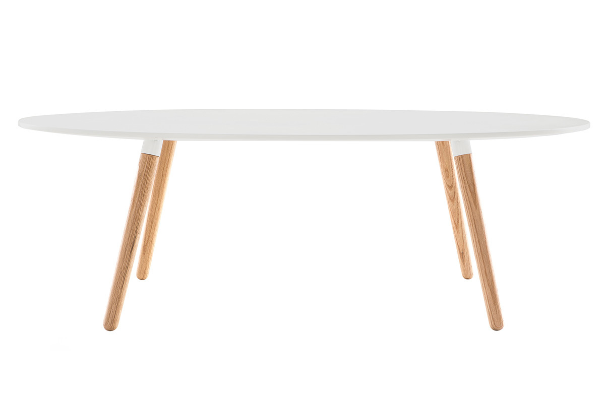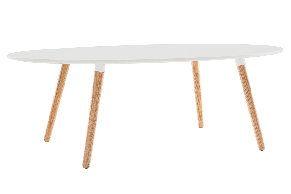 Son plateau est en panneaux de fibres de bois peint fini mat et ses pieds sont en chêne. Profitez ainsi d'un plateau facile d'entretien et d'un piètement robuste. Grâce à ses dimensions, cette table basse offre une surface généreuse idéale pour créer un espace convivial dans le salon.