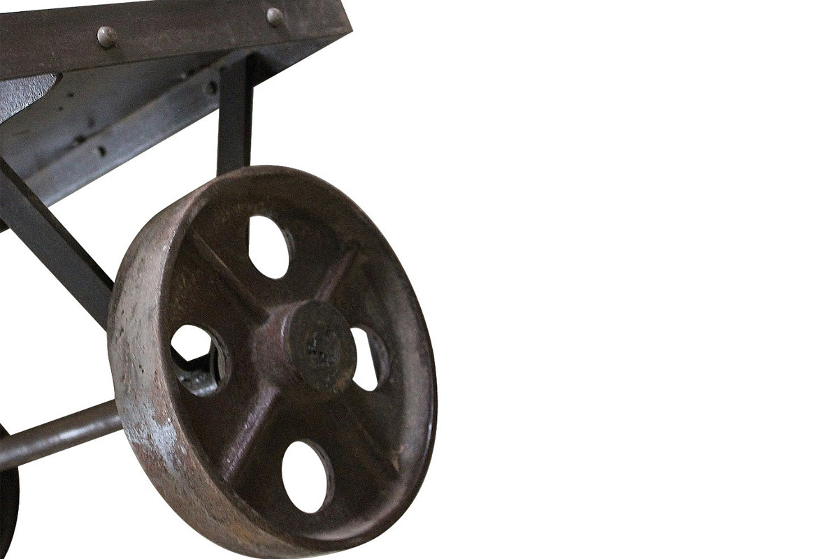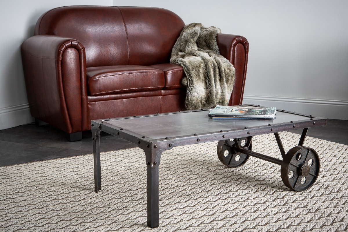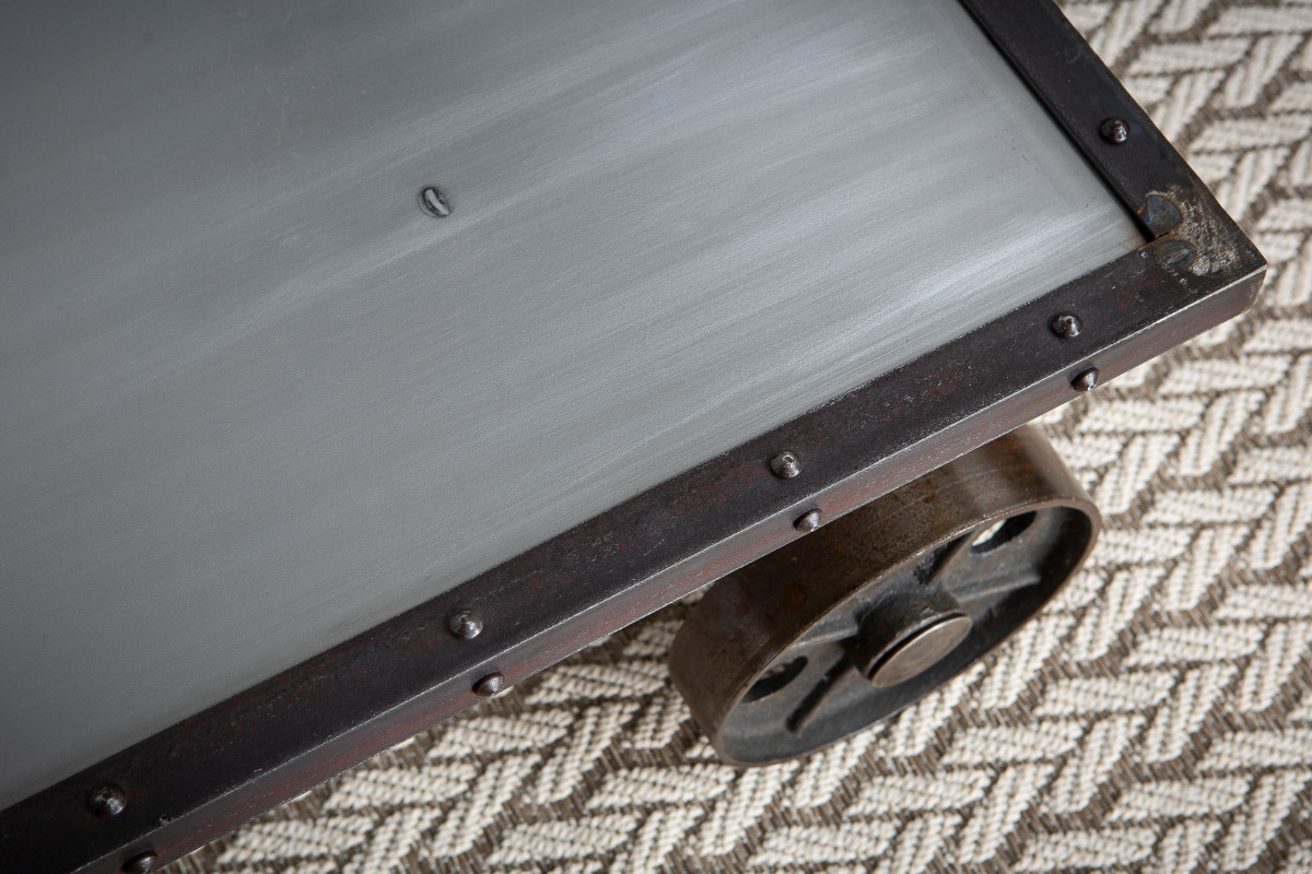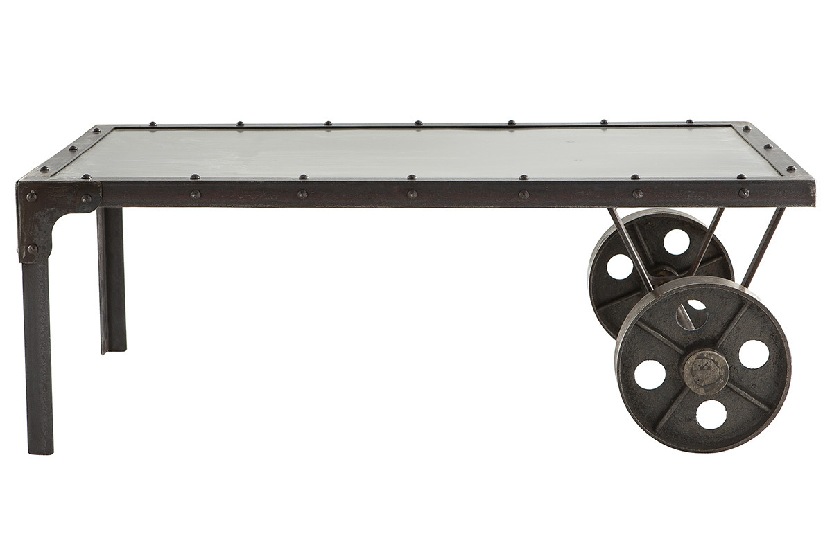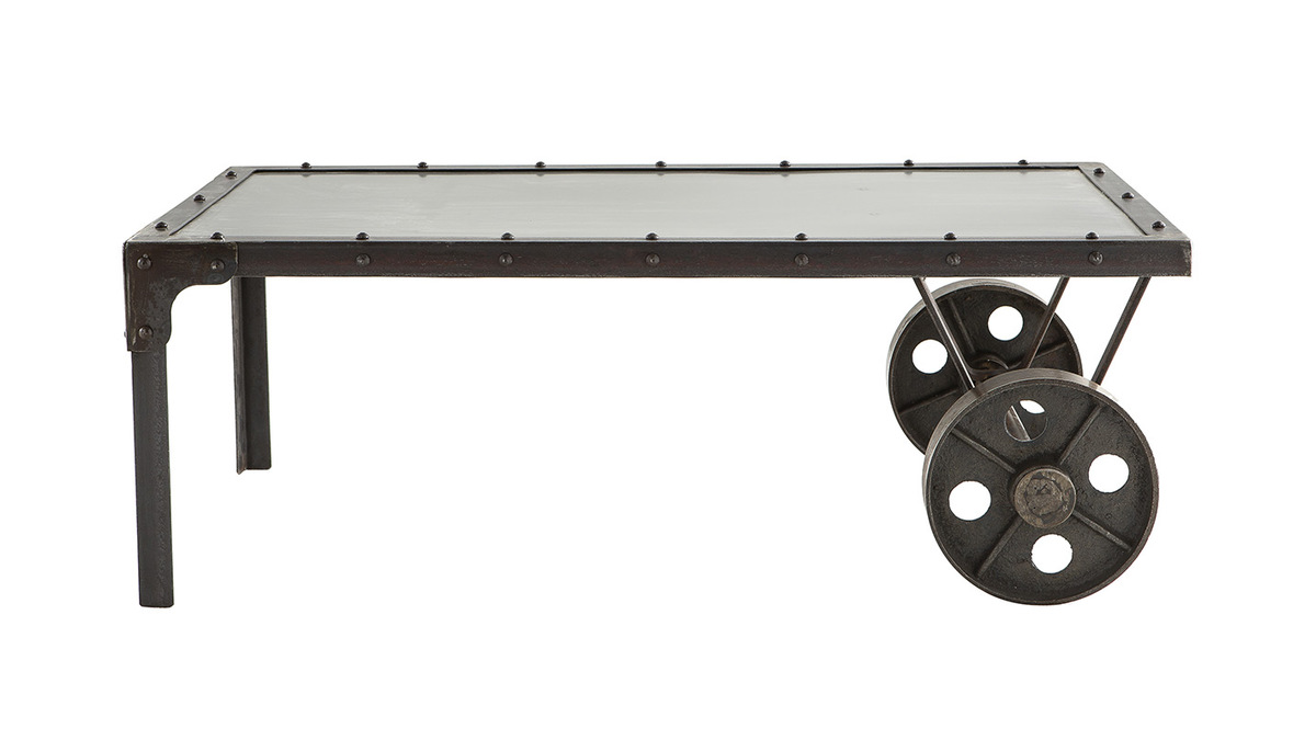L'aspect vieilli de son plateau en métal brillant lui confère un look très authentique. Le caractère fonctionnel du mobilier industriel est respecté dans ses moindres détails puisque la table basse CHARIOT est dotée de deux roues qui permettent de la déplacer sans encombre et d'optimiser votre décoration.