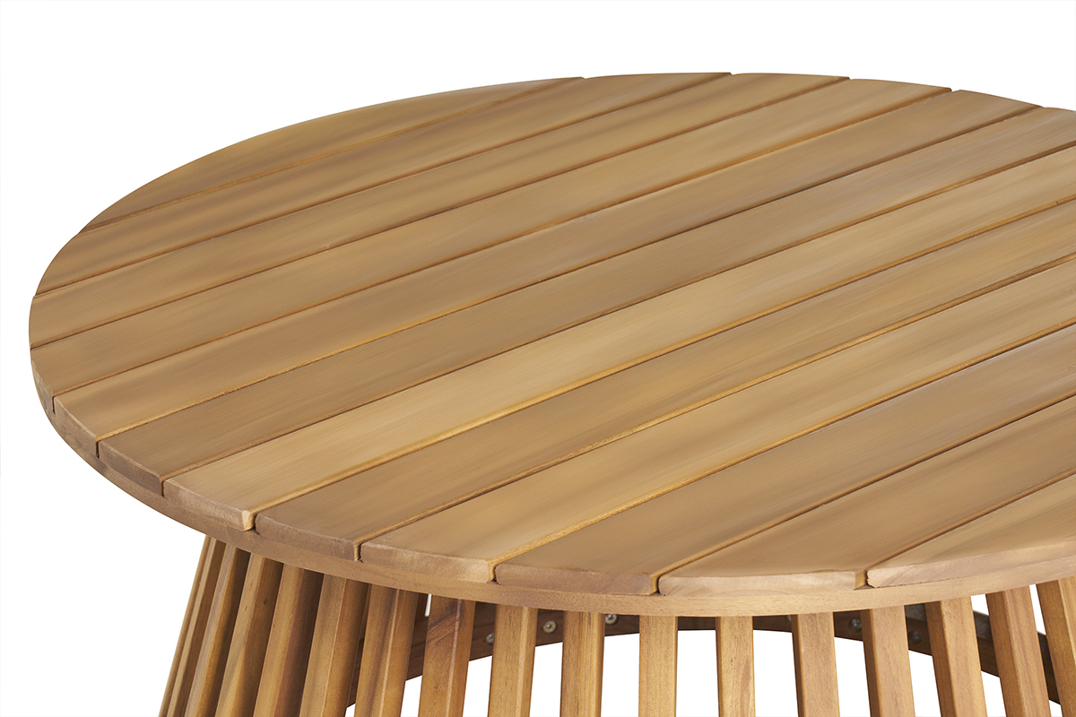 L'acacia est une essence naturellement dure et dense qui a une bonne résistance à l'humidité. Pour faire face aux UV, intempéries et moisissures, la structure en acacia est enduite d'une huile protectrice. Le bois a tendance à prendre une teinte grise avec le temps. Celle-ci n'altère en rien ses propriétés. Il est néanmoins recommandé de nourrir et protéger votre meuble de jardin pour qu'il garde sa splendeur dans le temps en appliquant une huile adaptée au mobilier d'extérieur que vous trouverez dans tous les magasins spécialisés.