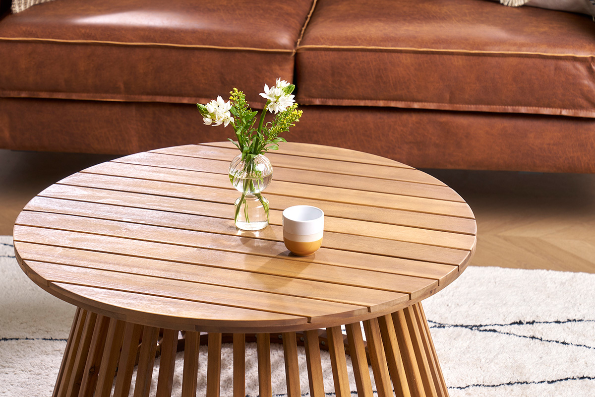 Avec un plateau de 80 cm de diamètre, cette table basse ronde offre un espace pratique et esthétique pour vos moments de détente. Sa finition huilée met en valeur le grain naturel du bois, ajoutant une touche chaleureuse et sophistiquée à votre salon, jardin, terrasse ou balcon. Facile d'entretien, il suffit de la nettoyer avec un chiffon humide et d'appliquer de l'huile de bois d'acacia deux fois par an.