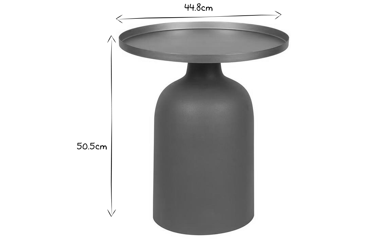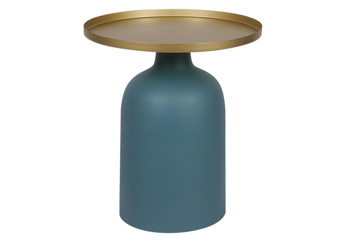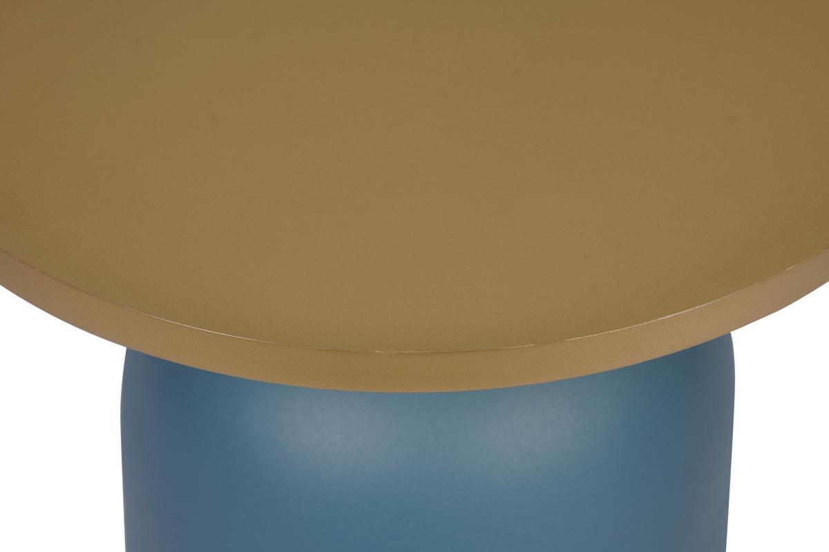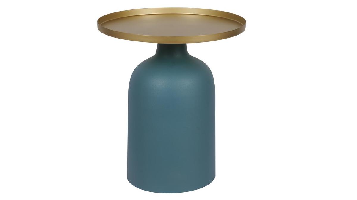 Cette table 100% métal est issue d'un joli travail sur la matière. On aime ses lignes rondes, simples et massives et ses volumes parfaitement équilibrés. Le plateau en métal doré contraste brillamment avec le pied cylindrique de couleur bleu pétrole mat. La table d'appoint RAMSES s'assemble très facilement sans clou ni vis. Il suffit simplement de visser le plateau sur le pied. Ce dernier assure une stabilité optimale tandis que le rebord du plateau (2 cm) permet d'éviter les chutes d'objets.