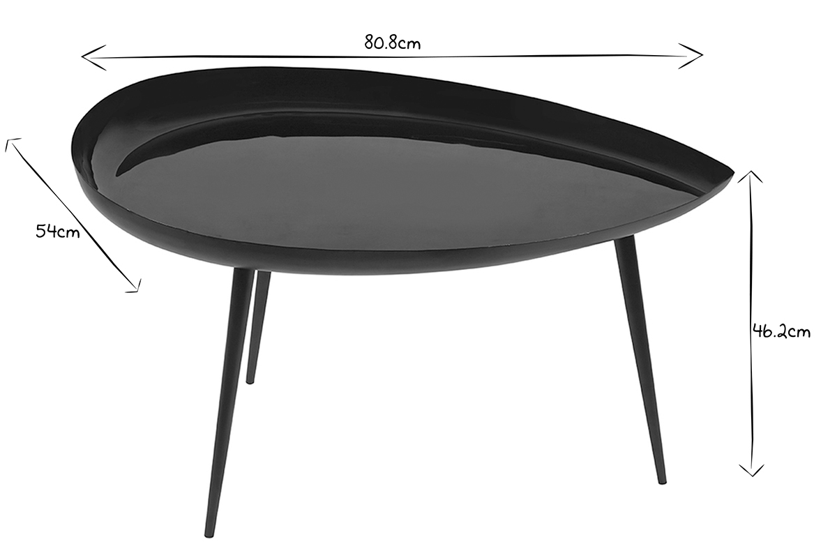 Installez cette table basse noire aux côtés d'un canapé en velours ou d'un siège en tissu coloré pour mettre en valeur votre mobilier. Avec ses dimensions L80.8 x L54 x H46.2 cm, la table DROP offre une belle surface pour profiter d'instants conviviaux autour du canapé.
