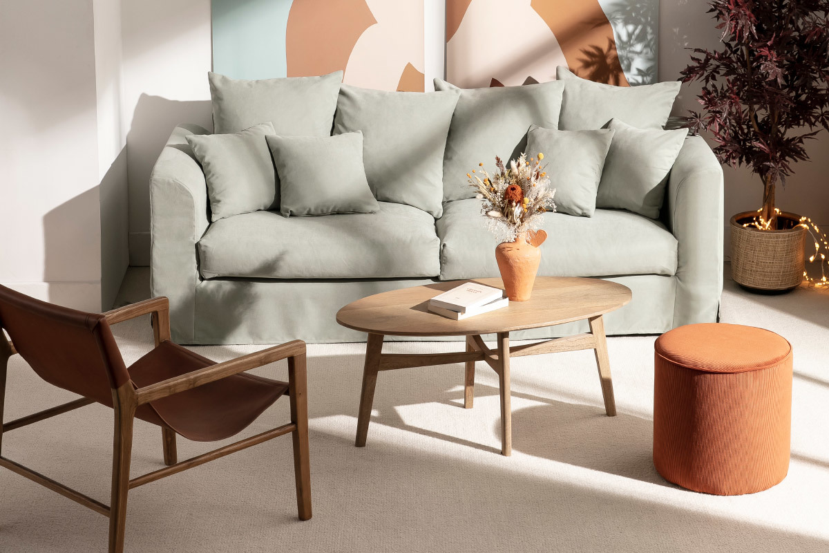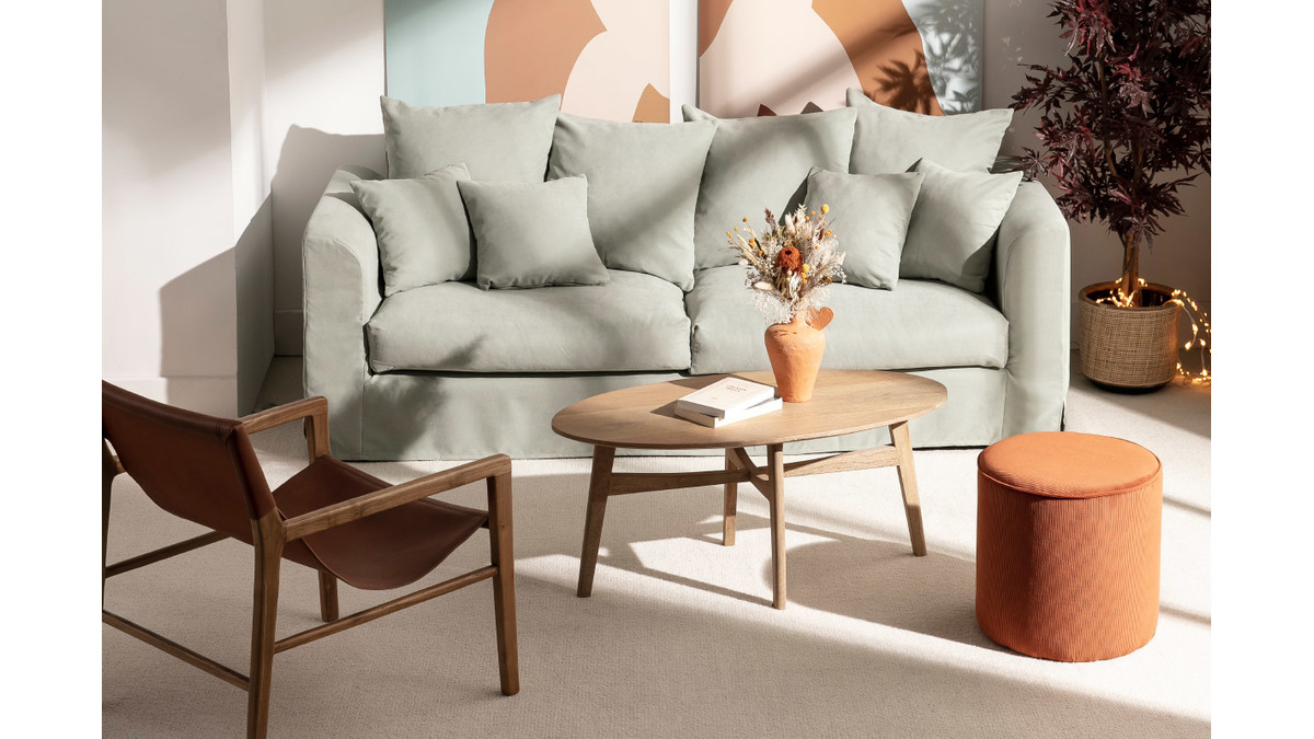 Avec ses dimensions généreuses (L100 x P50 x H45 cm), cette table ovale est idéale pour aménager un vrai espace convivial autour du canapé. Conçue intégralement en bois massif, c'est une pièce solide, adaptée aux soirées en famille et aux réceptions entre amis.