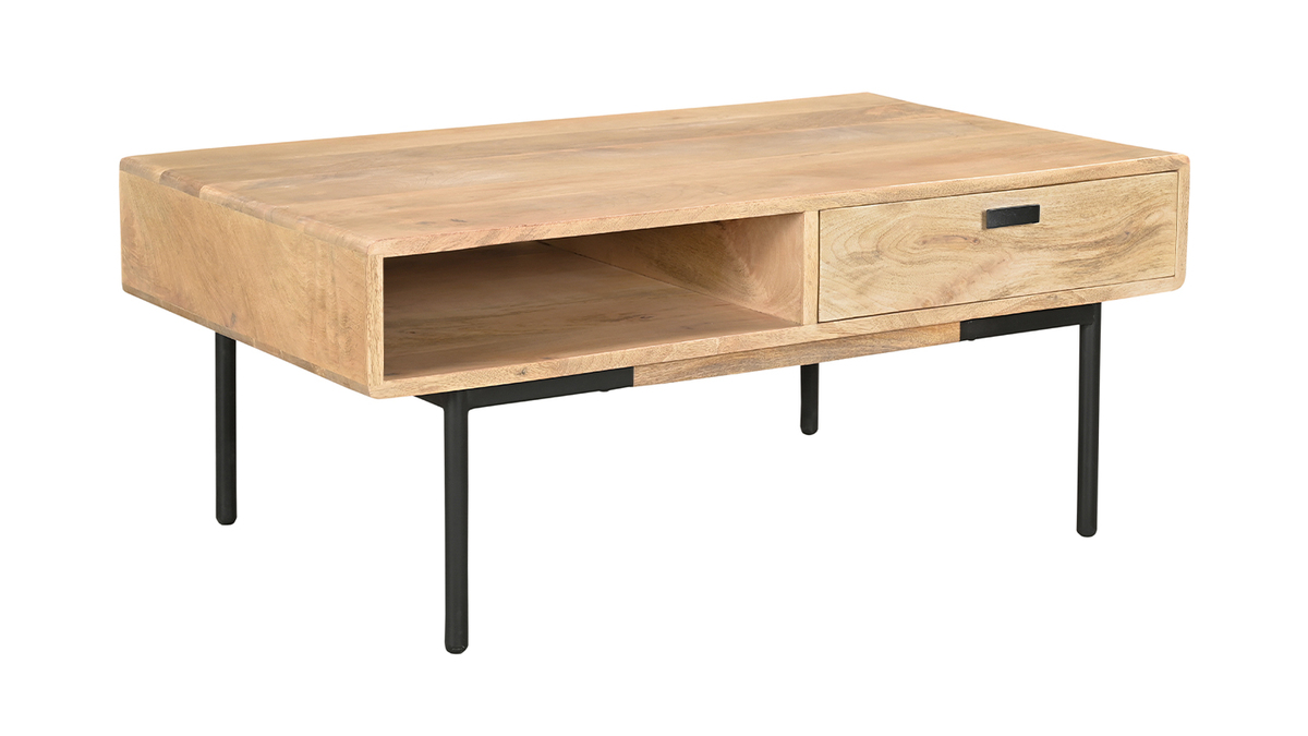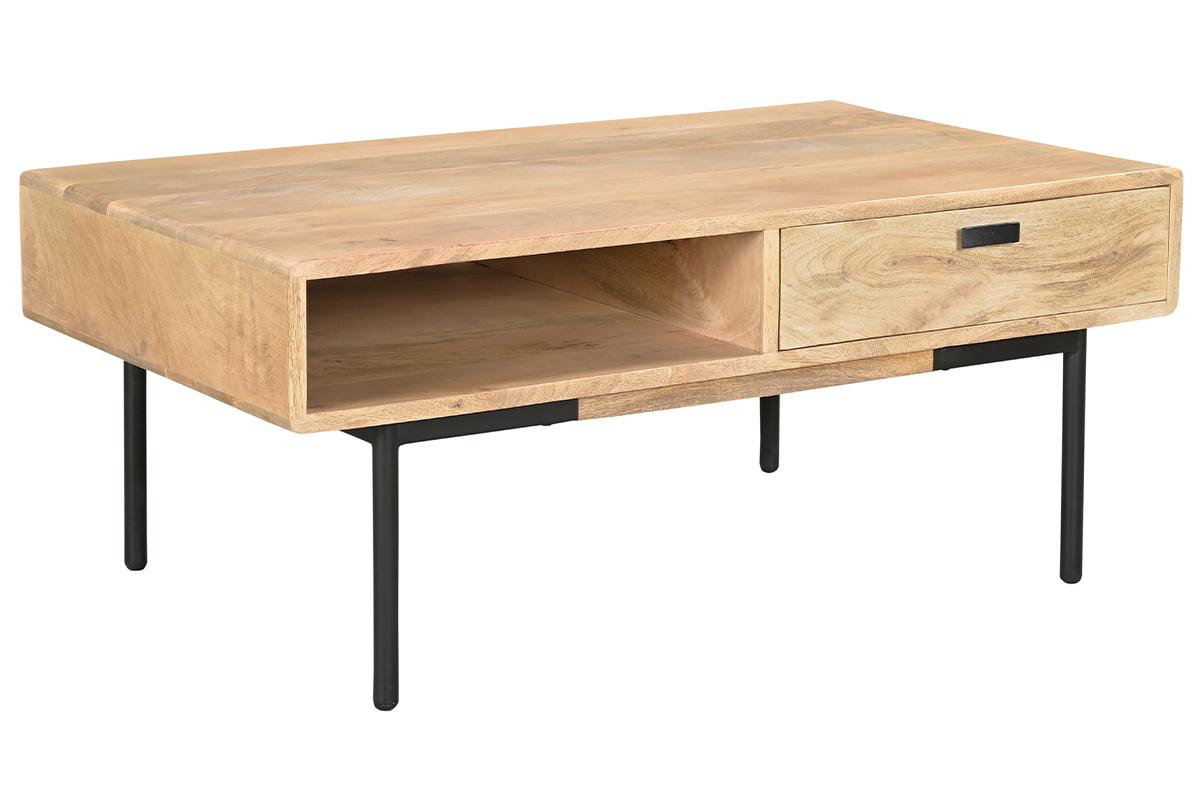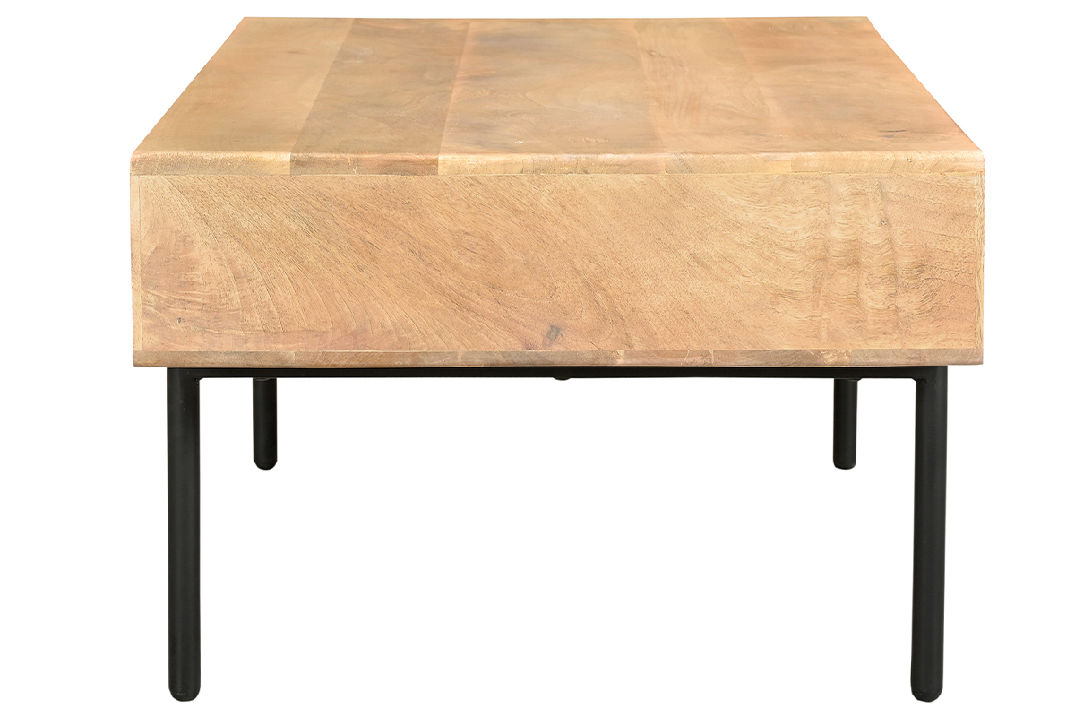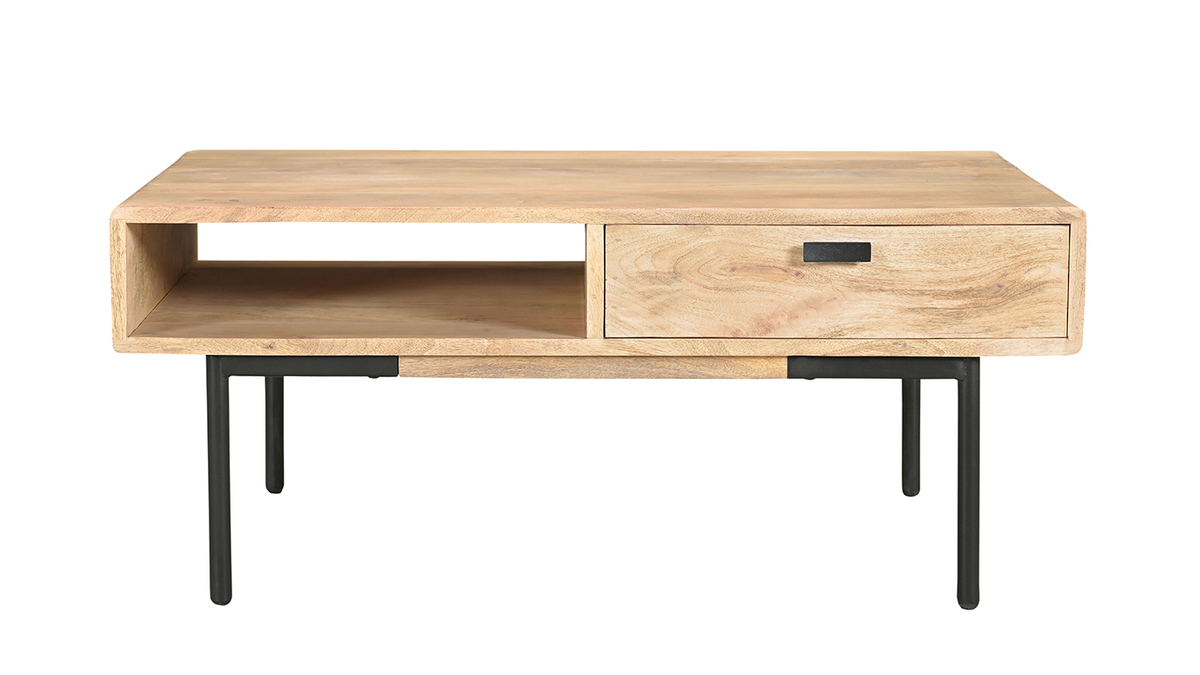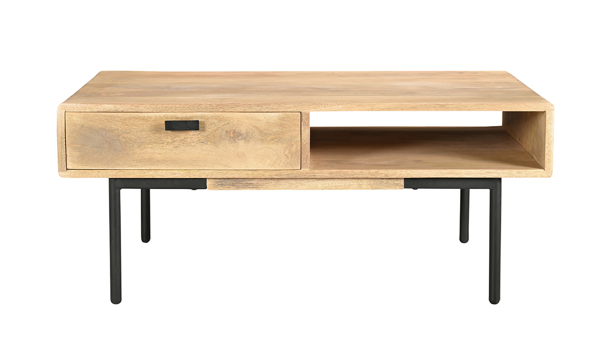 Avec ses volumes justement maîtrisés, cette table basse rectangulaire en bois et métal noir avec rangements évoque la quête d'équilibre entre modernité et esprit authentique.